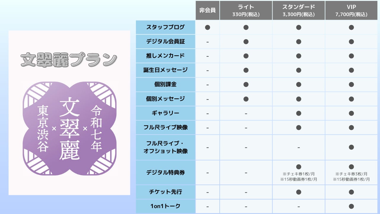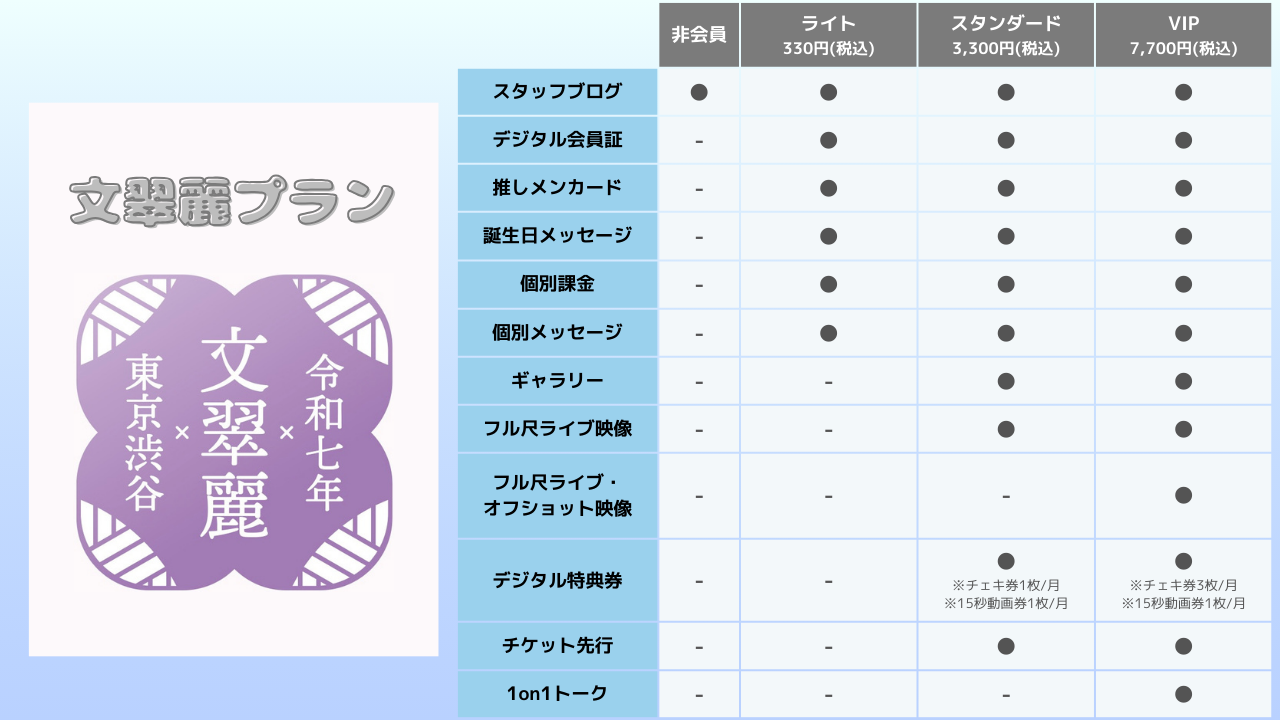 文翠麗、ギミラブ!、tongueそれぞれの個別プランになります。