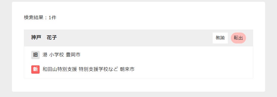 異動情報の公開前や、無料会員・非会員の方はデモ検索機能をお試しいただけます。色分けされたアイコンで、新旧の学校名や役職、新任・転任・退職などをわかりやすく表示した検索結果などを事前にご確認いただけます。