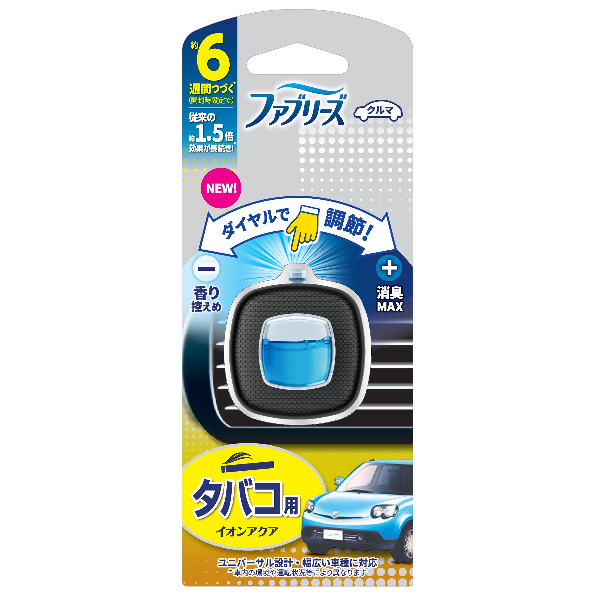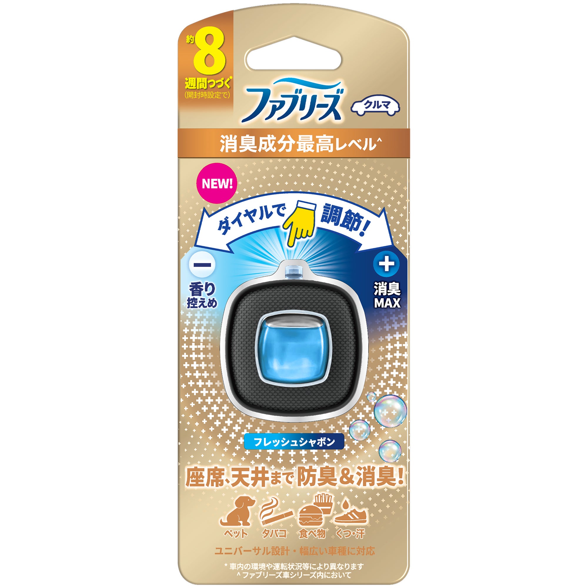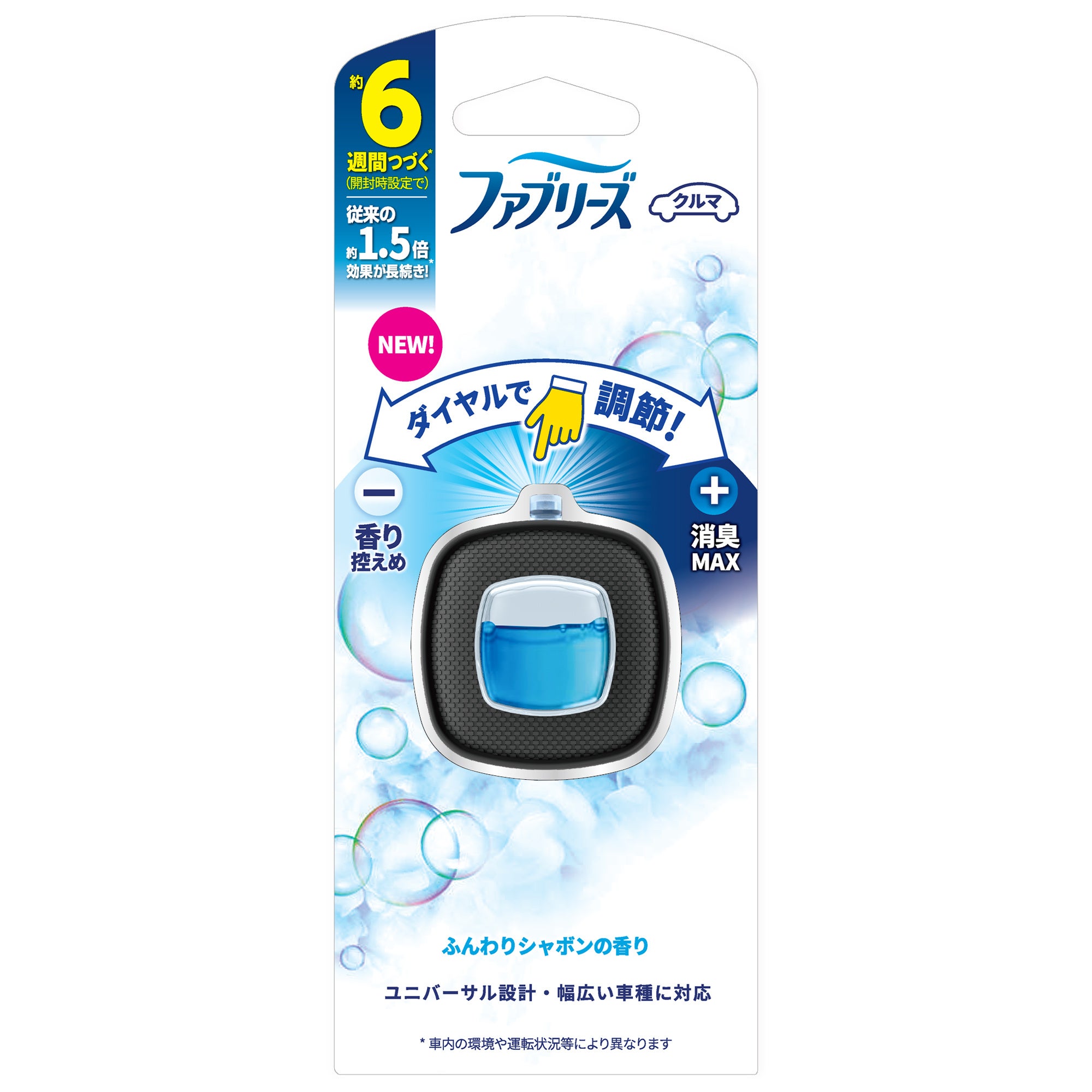 2012年に発売した「ファブリーズ イージークリップ」は、車のエアコン送風口に取り付けておくだけの手軽な使用方法で車内の座席、天井についた食べ物やタバコ、ペット臭などの頑固なニオイも消臭・防臭する車用消臭芳香剤です。現在は、車内の消臭・芳香効果に加えて、防カビ効果が備わったシリーズや抗菌効果が備わったシリーズ、香りにこだわったシリーズなど様々なラインナップを展開しています。