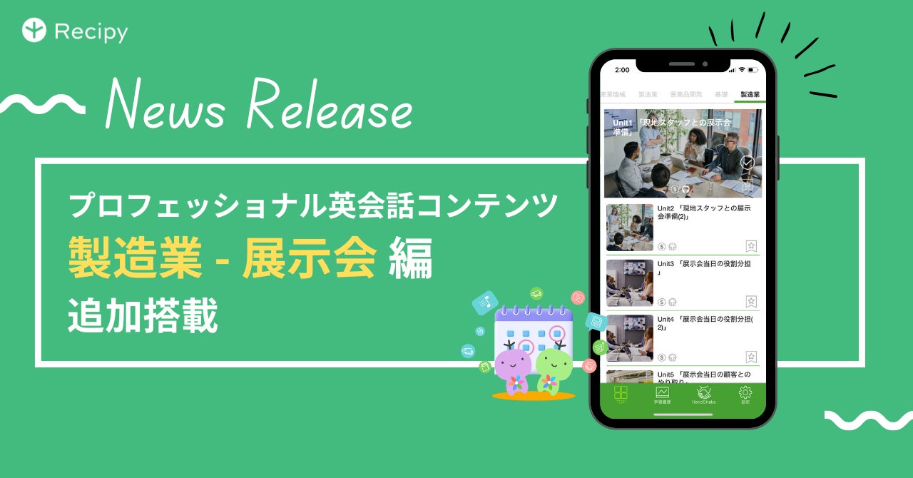 「製造業 - 展示会編」新登場!ビジネス英語にも強い英語学習アプリ『レシピー』の業界特化型英会話でスキルアップを目指そう!- 株式会社ポリグロッツ( POLYGLOTS )