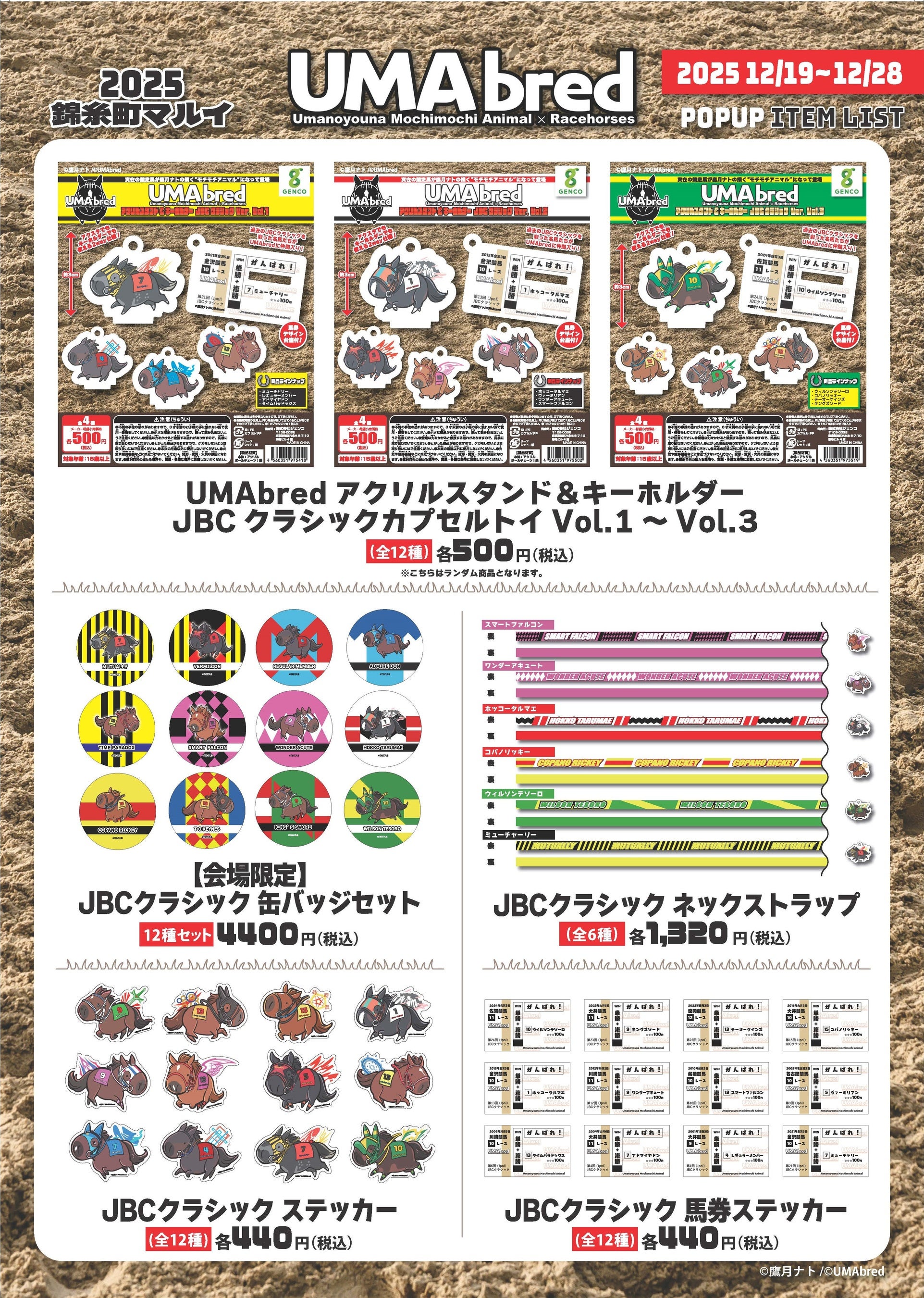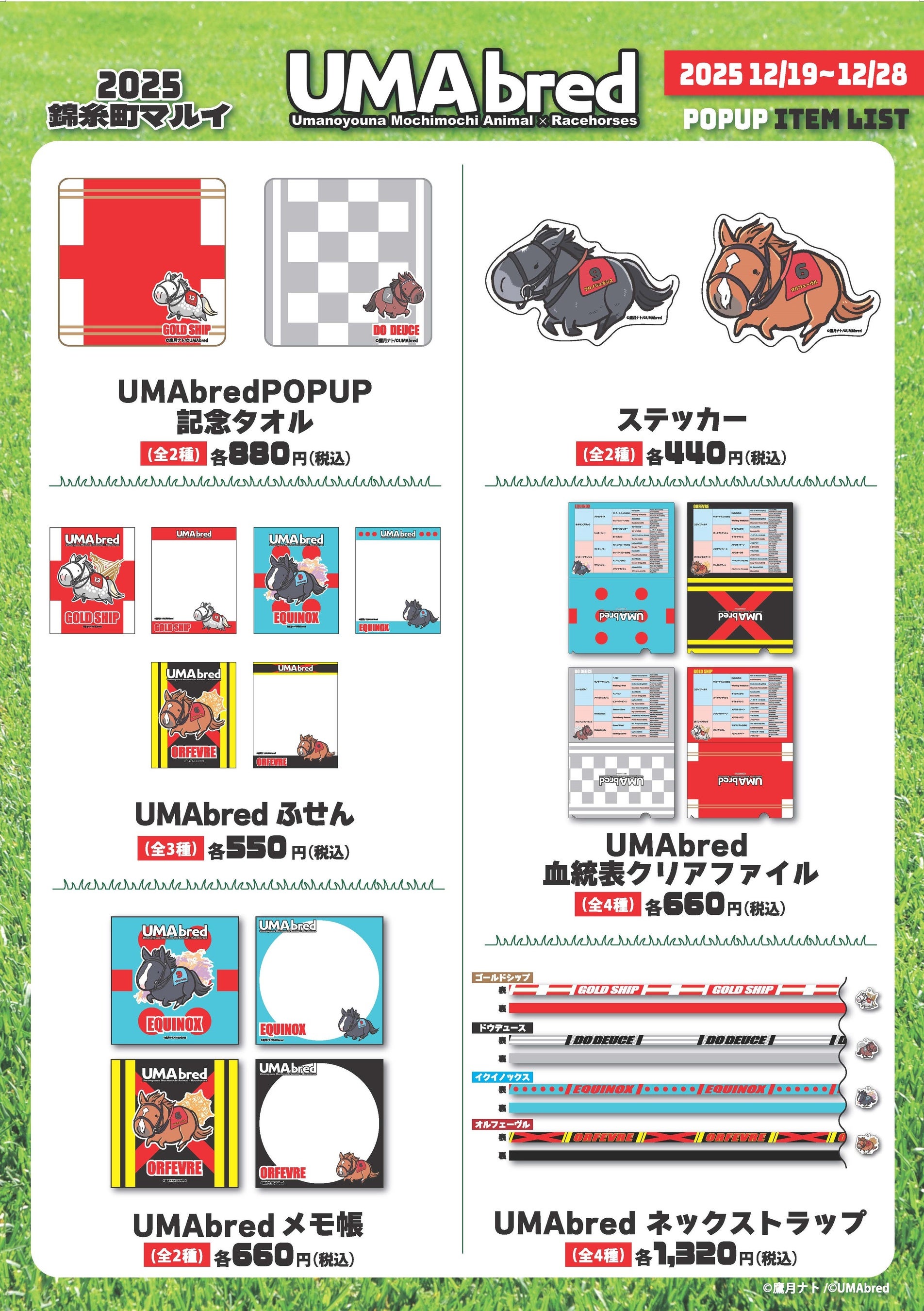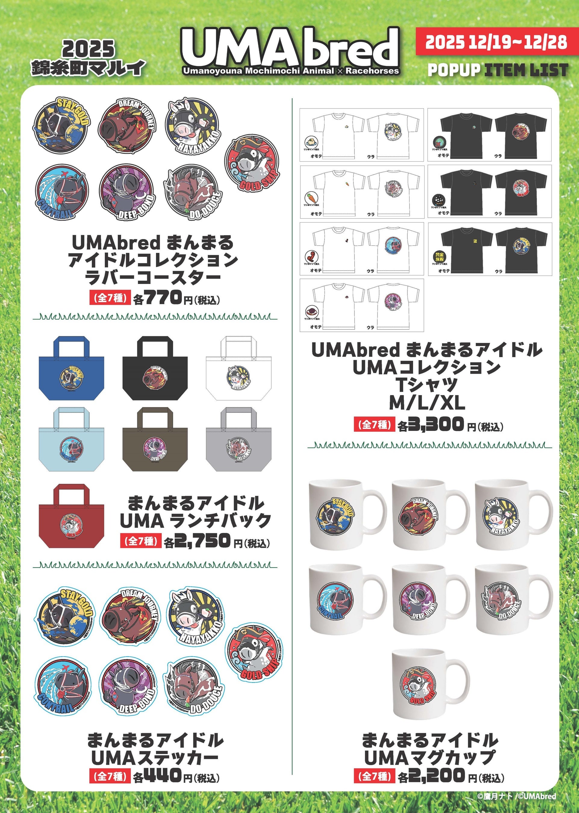 実在の競走馬・引退馬を「UMA」(ウマのようなモチモチアニマル)として描きおろすグッズブランド「UMAbred」は12/19(金)より錦糸町マルイにて完全新規ラインナップグッズのPOPUPを開催いたします。