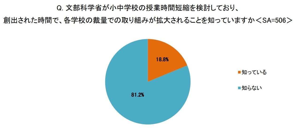 子どもがいる親世代に聞いた「小中学校での授業時間短縮に対する意識調査」小中学校の授業短縮の認知度は約2割にとどまるも、各学校における新たな時間の活用方法に期待!