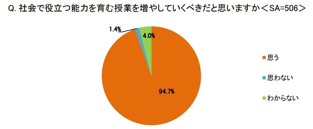 3.9割以上の親が、子どもが社会で役立つ能力を育むための授業実施を希望!