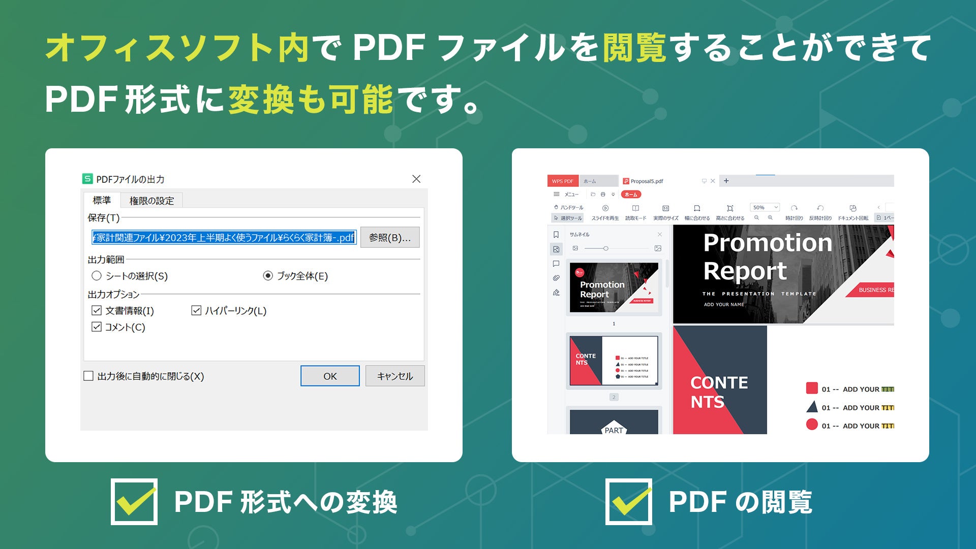 ■ PDFファイルに変換、PDFファイルの閲覧に対応