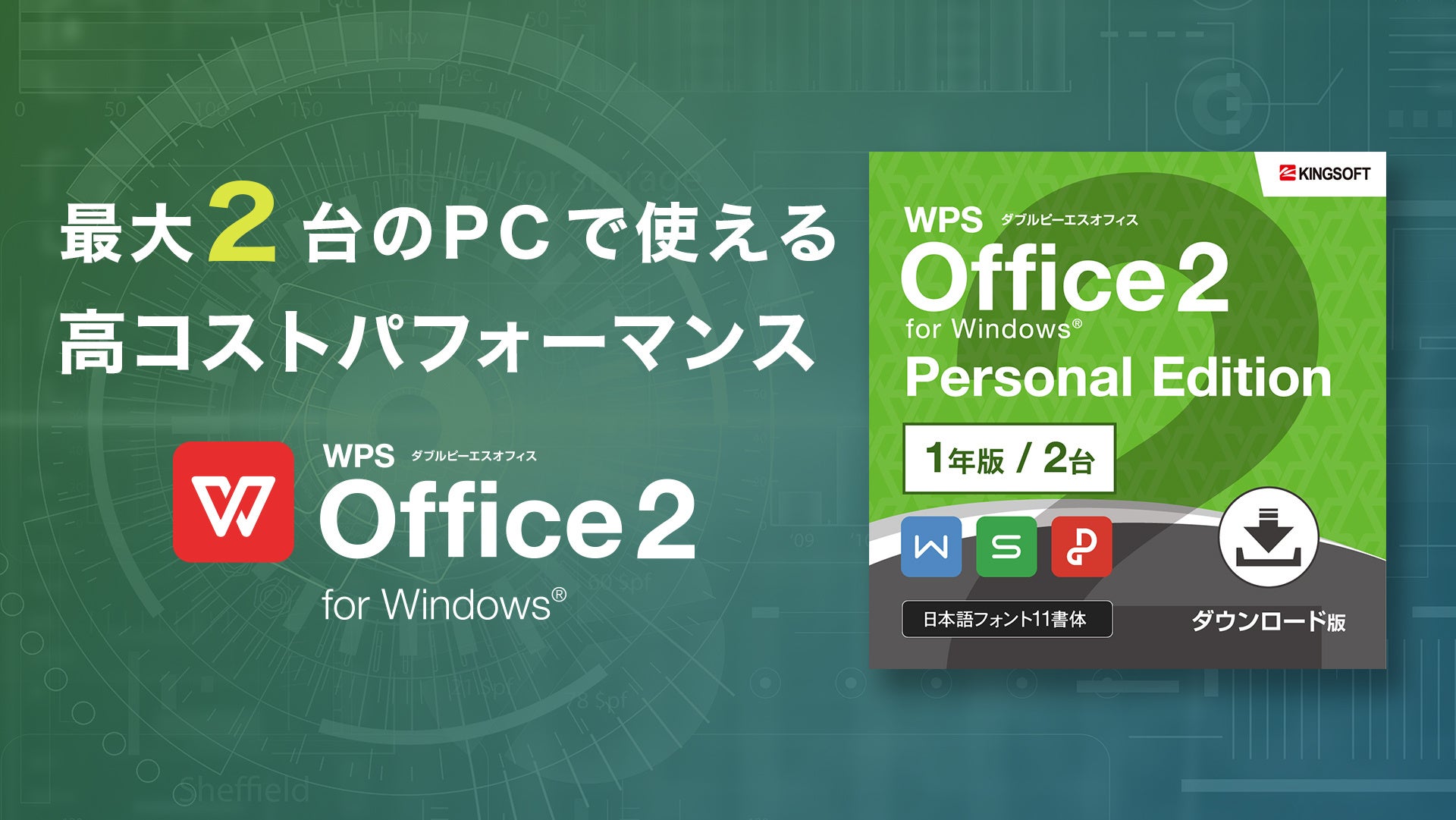 1ライセンスでPC2台まで使える、文書作成と表計算に特化したオフィスソフト「WPS Office 2 Personal Edition 1年版」を販売開始