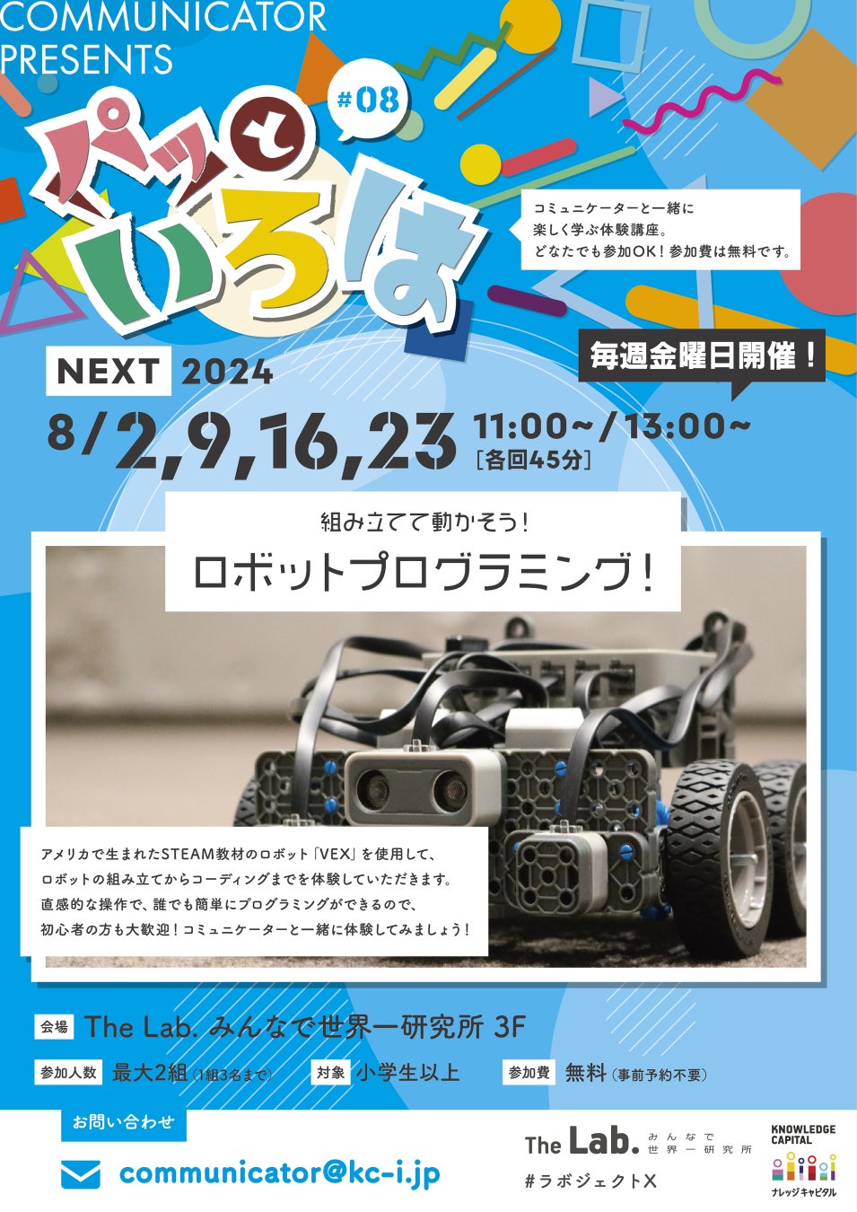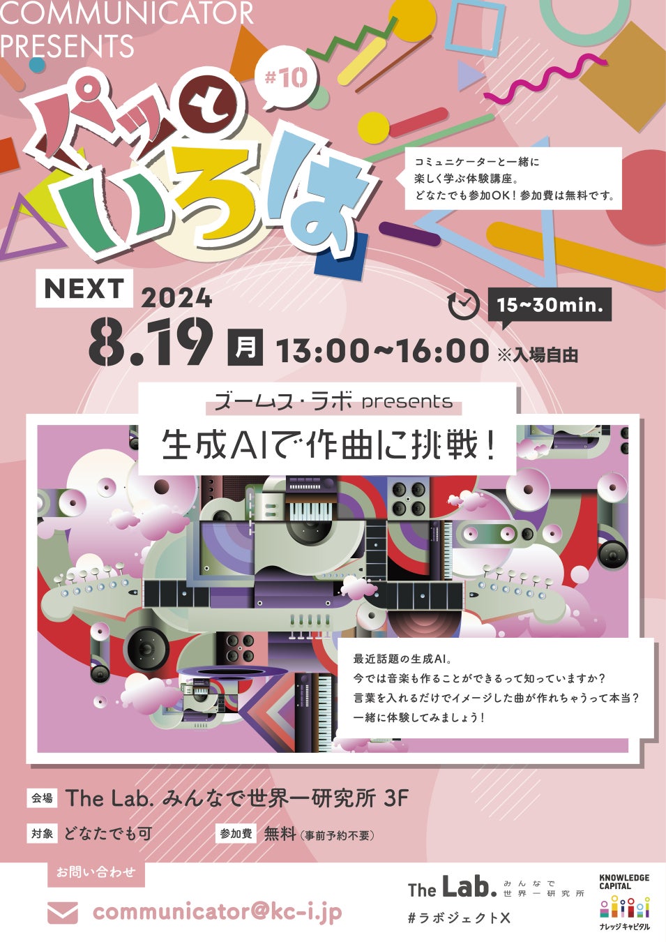 一般社団法人ナレッジキャピタル(専務理事:水原 正明)ならびに株式会社KMO(代表取締役:水原正明)は、グランフロント大阪北館2・3階「The Lab.みんなで世界一研究所」(ザ・ラボ)の夏休み企画についてお知らせいたします。
