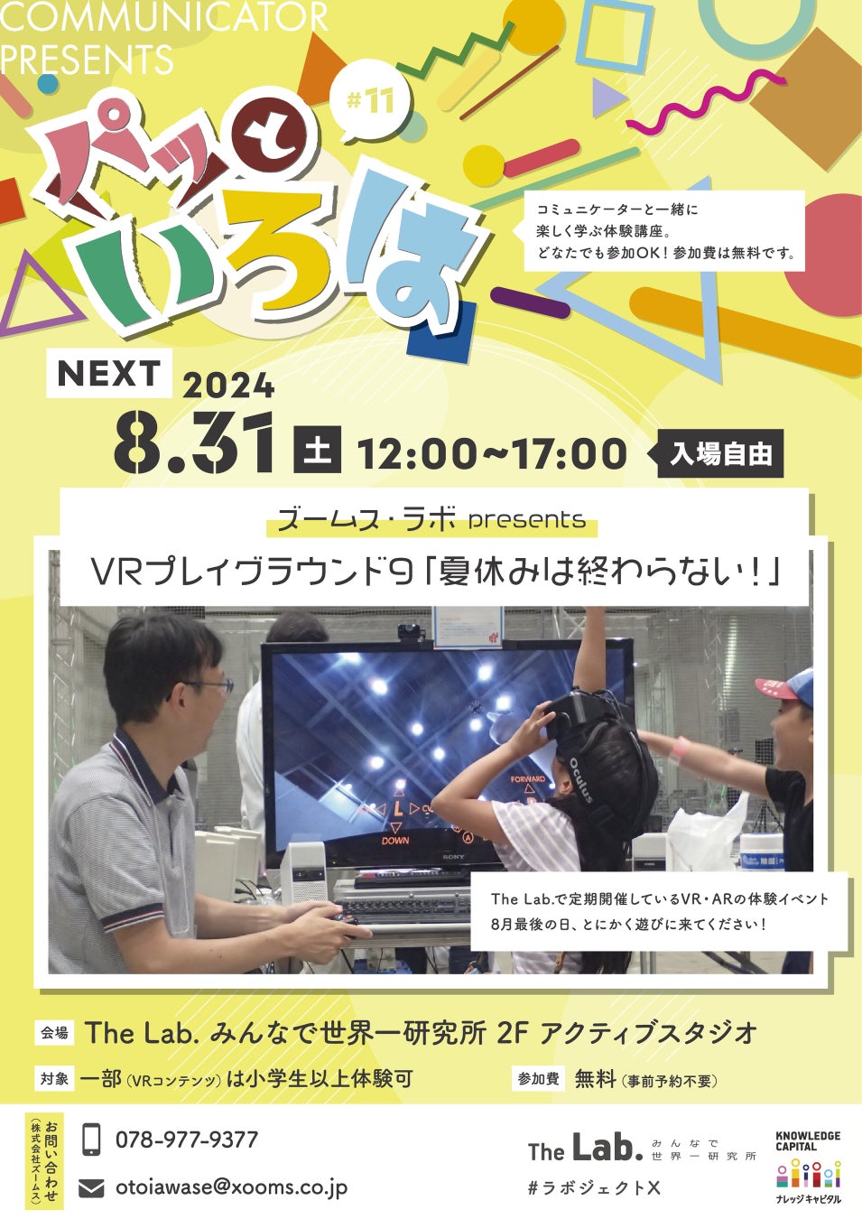 ズームス・ラボが他のナレッジキャピタル参画者とのコラボレーションによりザ・ラボで定期開催しているVR・ARコンテンツの体験会「VRプレイグラウンド」をコミュニケーター企画の「パッといろは」との連携で開催。