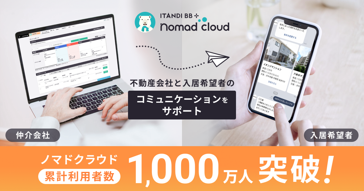 入居希望者と不動産会社のコミュニケーションをサポートするイタンジ「ノマドクラウド」、累計利用者数1,000万人を突破!