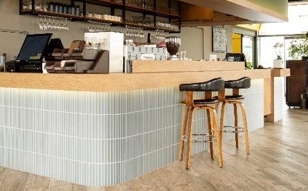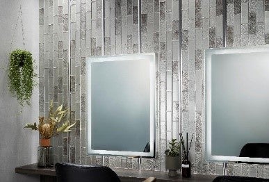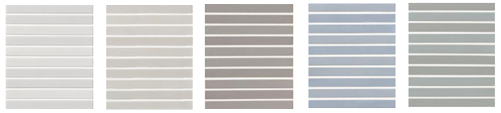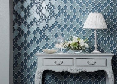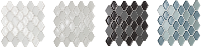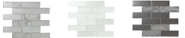 透明なガラスの奥に、凹凸を感じる3種類のレリーフが施された、大きめのガラスモザイクで、ニュートラル系のカラーバリエーションと相まって、金属を思わせるデザインとなっています。ファッショナブルで華やかな空間を演出します。