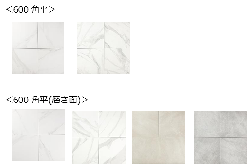 | 600 角平 | ― | 597.5×597.5 mm | 9.3 mm | 13,600円/㎡ |