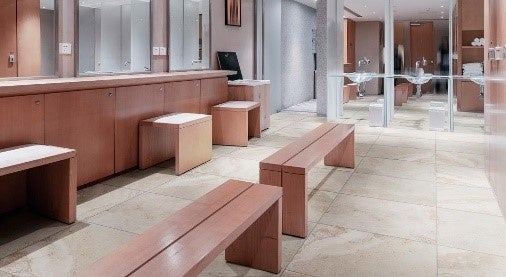 手触りまでリアルな大理石調タイルで、最先端の技術によって柄と連動した凹凸が表現できるようになり、手触りまでリアルに再現されています。しっとりとした表情で落ち着いた空間を演出したいホテルなどのエントランス、ロビー床におすすめです。