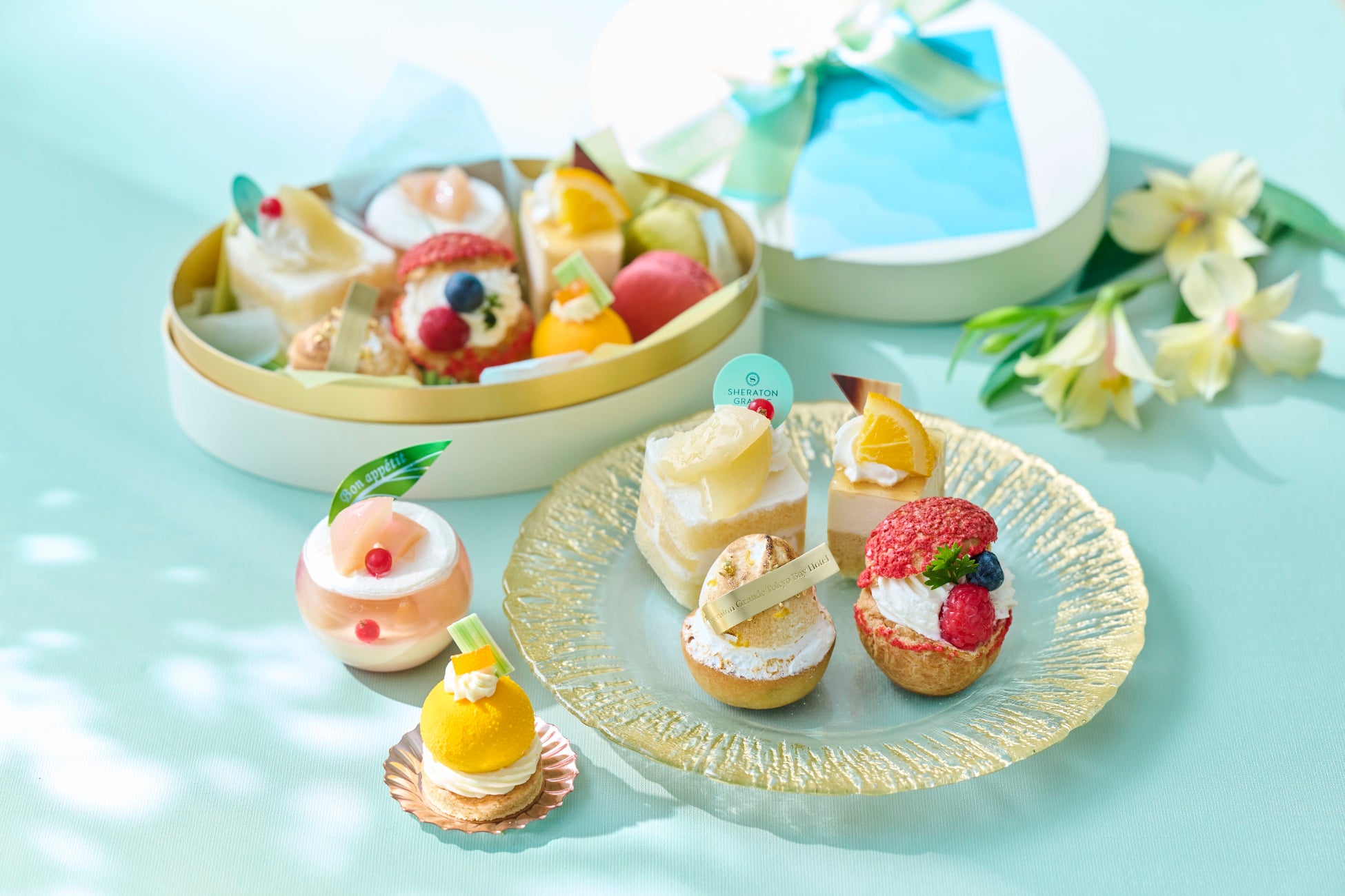 8種類のミニスイーツが一堂に会する「#シェラトンスイーツボックス」。ボックスを開けると広がる、涼しげな色とりどりのラインナップをぜひお楽しみください。