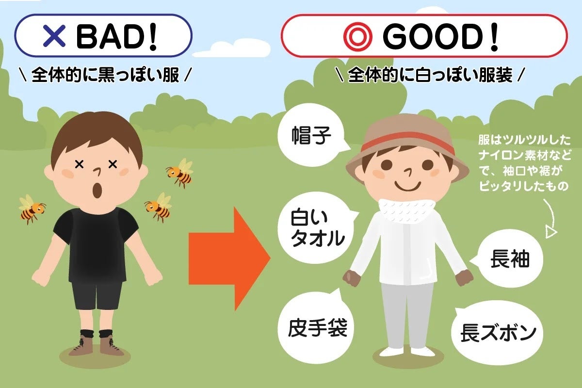 ▼屋外でハチに刺されるのを防ぐ対策