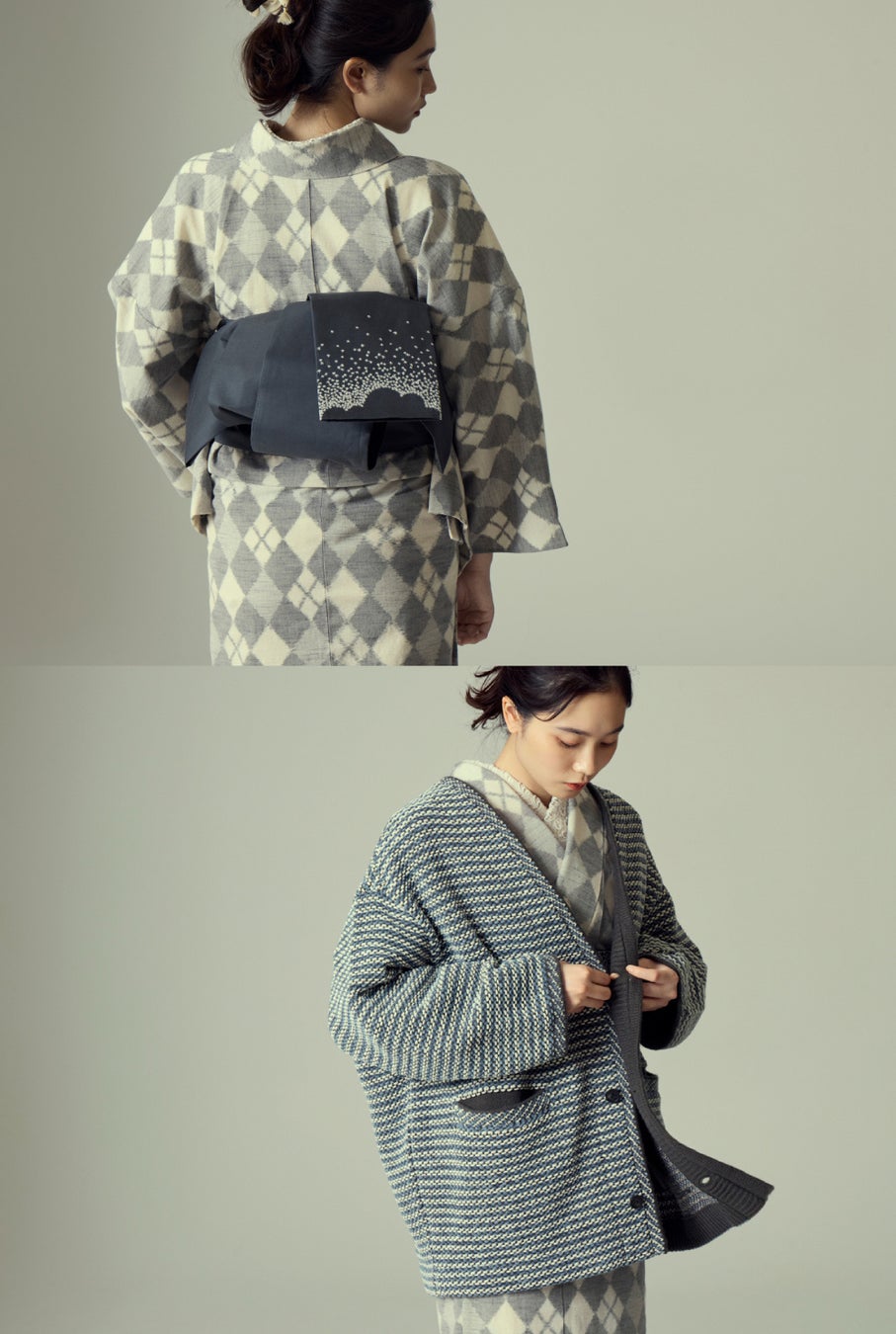 今回のコレクションでは、福岡の久留米絣や博多織、京都で染められた洗えるきもの「やまと可憐」、岐阜の尾州ウールなど、日本各地の産地(さんち)とともに生み出した上質な素材と、〈きものやまと〉ならではのデザインを融合しました。