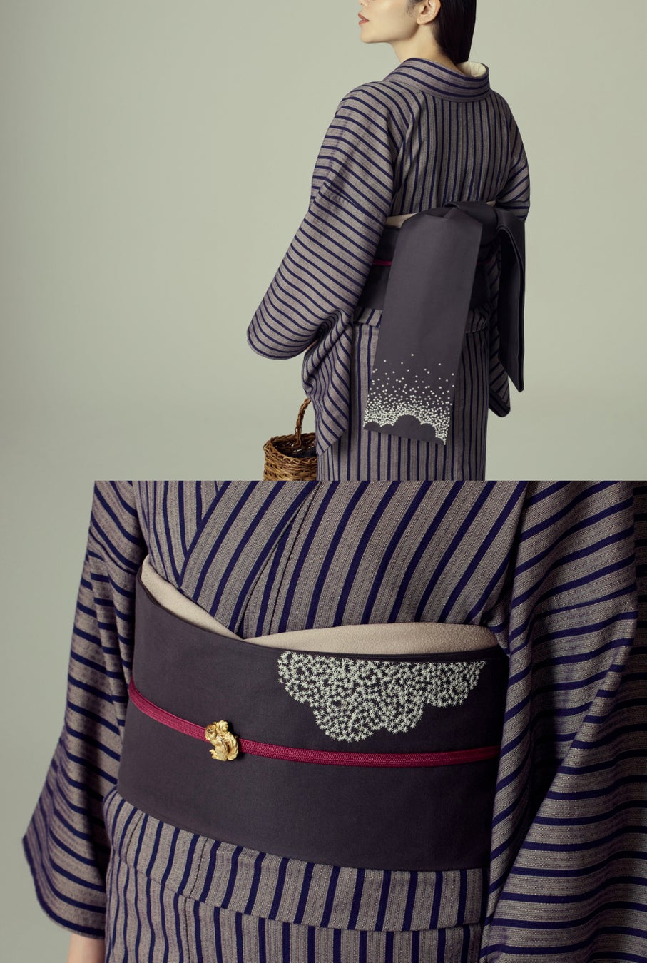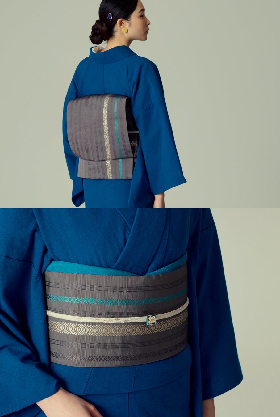 半巾帯|縞格子 グレー 61,600 円(仕立上り品)