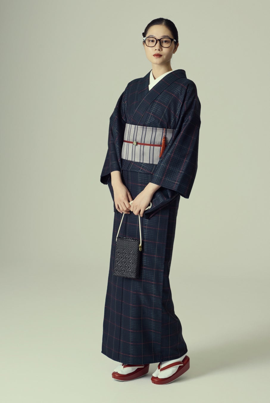 きもの| 尾州ウール リバーシブルチェック ダークネイビー×レッド 71,500円(手仕上ミシン単衣仕立付)