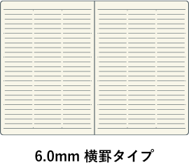ベーシックな6.0mmの横罫ノートです。上下のドットを活用し、縦にラインを引くことで書く内容を整理することもできます。