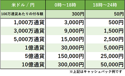 - 【人気の米ドル/円】お取引数量に応じて24時間キャッシュバック