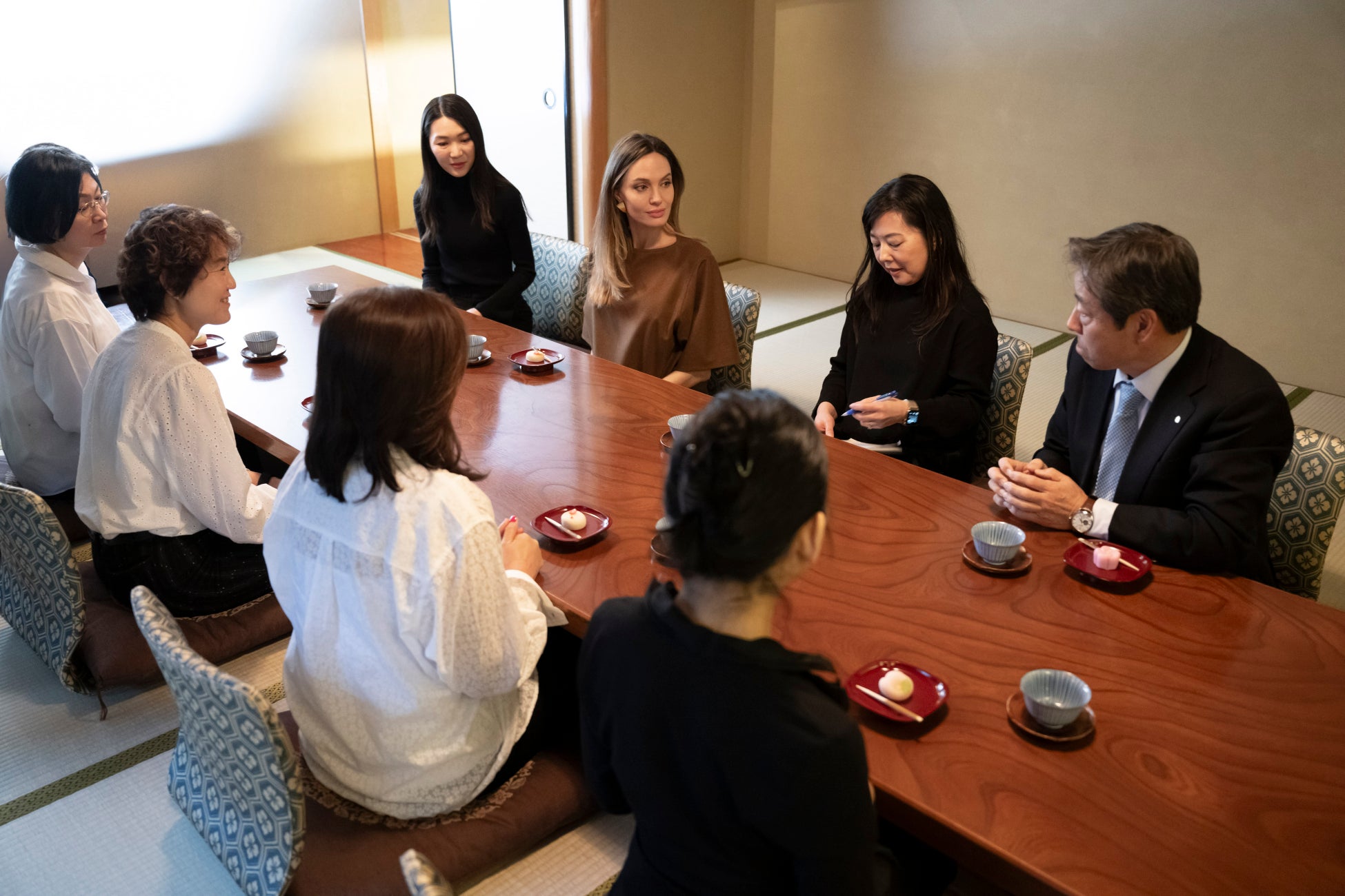 女性の教育とトレーニングの力を強く信じるアンジェリーナ・ジョリーにとって、日本の女性および養蜂業に従事する女性が直面する性別不平等の持続的な課題は、特に心に響くものでした。来日中、東京と大阪の”Women for Bees” 卒業生と交流し、都市部の養蜂コミュニティではその職業は成長しつつあるものの、いかに閉鎖的で男性優位な状況が続いている