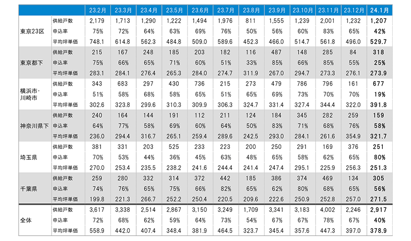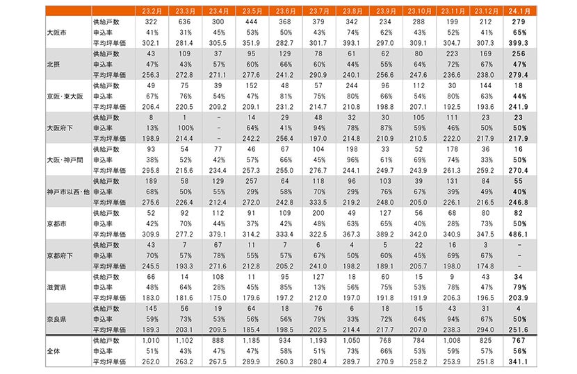 月例新築マンション動向発表~関西の新築マンション平均坪単価、前年同月比31.7%上昇(2024年1月度分譲実績)2024年4月号~