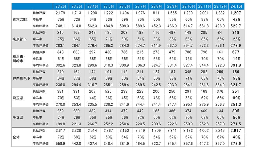 不動産ビッグデータとAI等のテクノロジーを活用し、不動産マーケティングプラットフォームを提供する株式会社マーキュリーリアルテックイノベーター(本社:東京都新宿区 代表取締役:陣 隆浩、証券コード5025、以下「当社」)は、独自調査による新築マンション動向を発表致します。今月は、2024年1月度分譲実績データです。