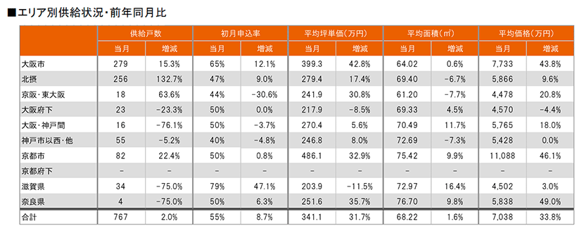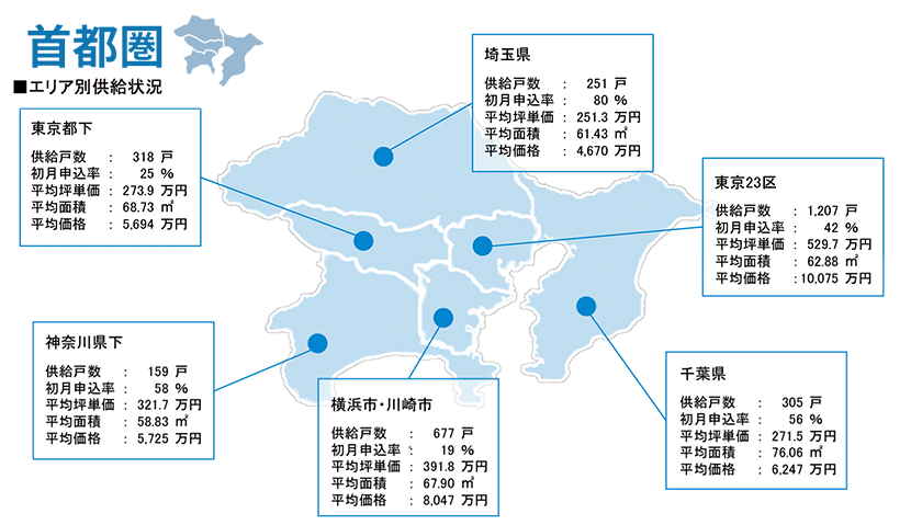 集計対象エリアは首都圏及び関西で、それぞれのエリア別相場情報、需給動向、着工件数等を集計しました。