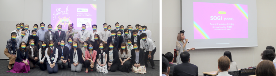 LGBTQ+においては、全社で取組む姿勢をトップから発信、全社員のアライ(Ally)eラーニング研修、誰もがもつ「人によって異なるSOGI(SOGIE)」を考える講演会の実施など、積極的に取り組んでいます。