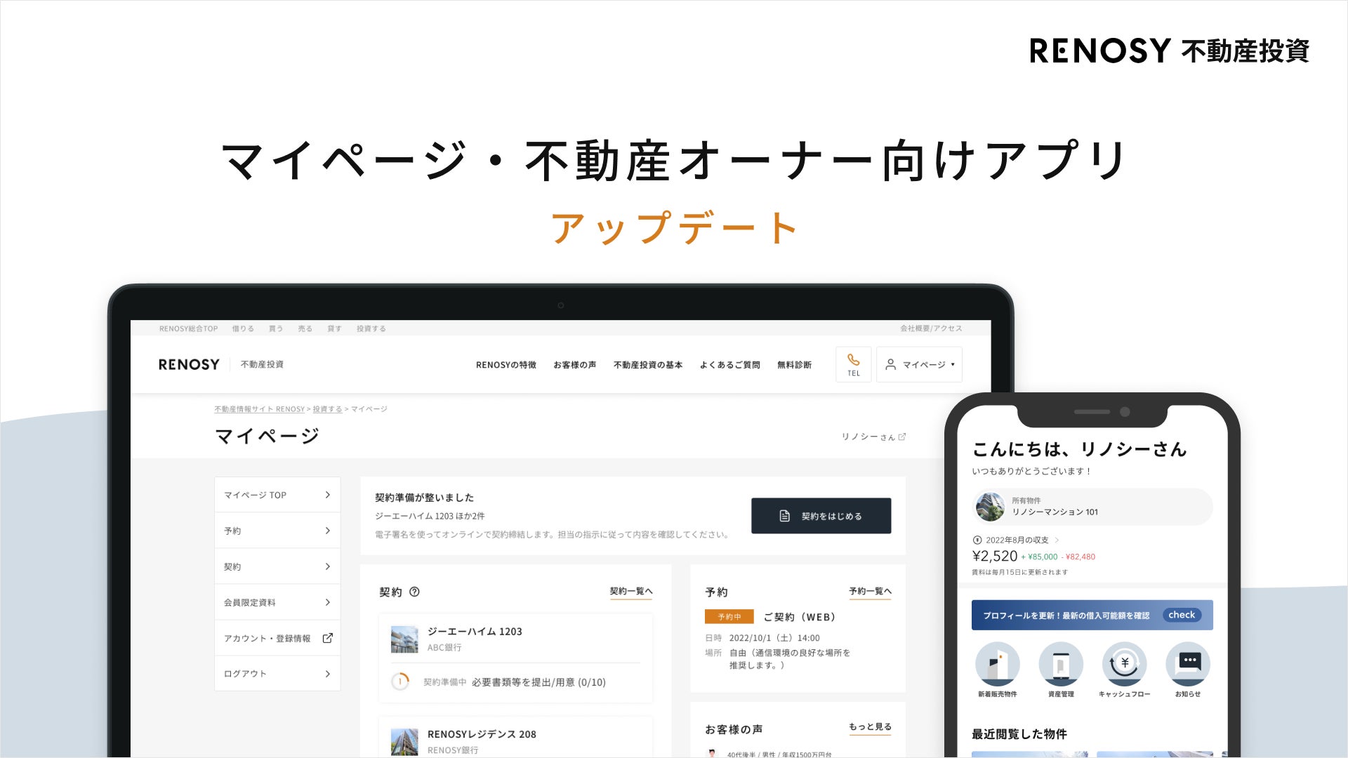 RENOSY不動産投資サービスをご利用のお客様向けマイページ アップデート前後