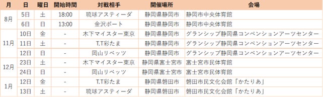 ■ 静岡ジェードのホームゲームスケジュール