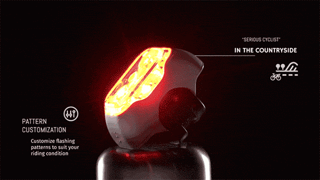 各LEDライトの点滅パターンはユーザーのライドスタイルや交通状況、天候に合わせて設定を変更できます。今後は点滅パターンを追加でアップデートする予定です。