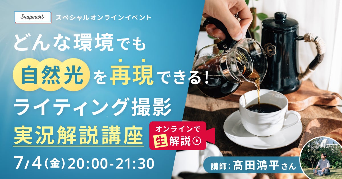 2025年7月4日(金)にSnapmartスペシャルイベント「どんな環境でも自然光を再現できる!ライティング撮影 実況解説講座」を開催します!