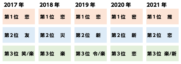 「恋」は調査を開始した2017年から3年連続1位、2020年以降も毎年3位以内にランクインしています。今後の結果にも注目です。