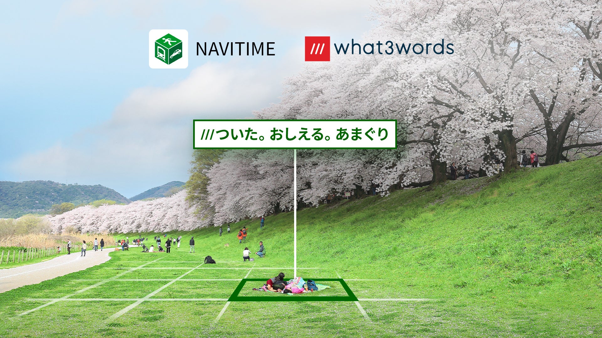今回、「what3words」を『NAVITIME』に対応することで、駅の出入口や海辺のスポット、公園のベンチなど、住所を特定できない場所を探す際に、その場所を説明するための目印となるものがない場合でも、例えば、広い公園の一角を「///ついた。おしえる。あまぐり」といった3つの単語で共有することで、公園の「どこ」が分かり、スムーズに集合することができます。他にも、特定の撮影スポットが存在しない自然や風景などの絶景やフォトジェニックな撮影場所を、3つの単語で共有する、といったシーンでもご活用になれます。