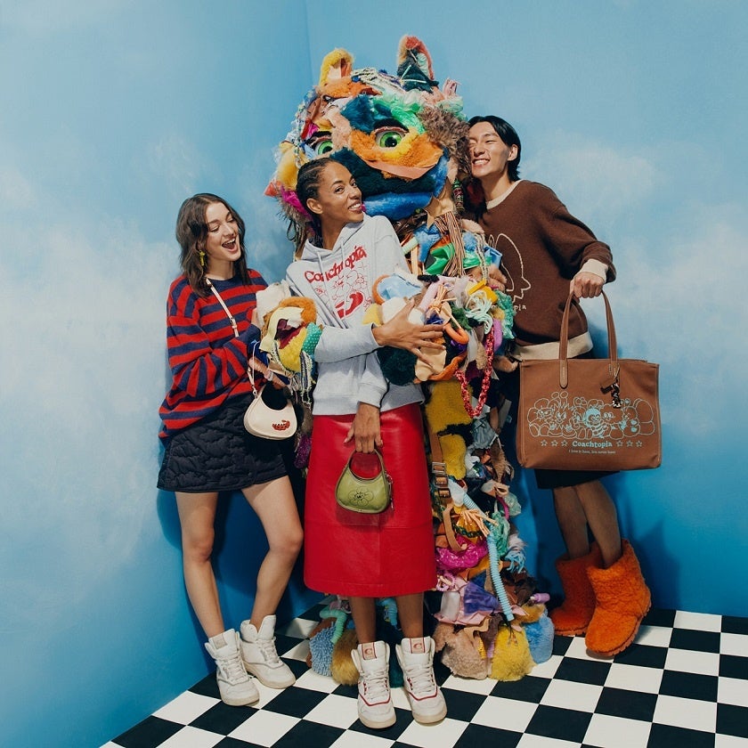 このキャンペーンでは、ローラやウェイスティとともに、廃棄物を独創的な方法で生まれ変わらせ、ホリデーシーズンにオーディエンスが直面するジレンマに対処する手助けとなる、アップクラフト素材やリサイクル素材、リサイクル可能な材料を使って作られた多彩なコーチトピア製品が紹介されます。主な製品には、アップクラッシュド アップクラフトレザーを使用した "エルゴ" といったアップクラフトされたバッグやアクセサリーだけでなく、98%以上のリサイクルウールを使用したプレイフルなグラフィック ニットウェア、100%リサイクルPETプラスチックを使用した "コーチトピア ループ キルテッド クラウド トート" の新作、さらに、これまでのコーチのコレクションの製造工程で余った材料を再利用したアップクラフト シアリングの端切れで仕立てた "チェッカーボード ベスト" など、特別なウェアも登場します。