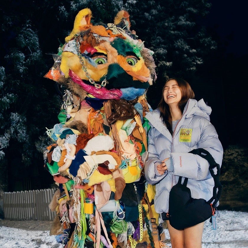 このムービーは、ウェイスティが夜な夜な街をさまよい、人が捨てたものを集めることから始まります。実際にコーチの製造工程で余ったり、捨てられたりするはずだった廃棄物でできたウェイスティは、「廃棄物で作ることによってサーキュラリティ (循環性) のパイオニアとなり、ファッション業界における温室効果ガス排出量の38%(2) を占めるバージン素材の新たな製造を削減する」というコーチトピアの核となるミッションを体現する巨大で、カラフルな愛すべきクリーチャーです。ムービーは、ある雪の降る夜、ウェイスティが窓から家の中をのぞくと、多くのZ世代の若者と同様、ホリデーシーズンを楽しんでいる中で山積みになっていくいらないものにパニックを起こし始めているローラ・タンの姿へと続いていきます。どうしたらいいのだろうと思いながら家路に着くと、ウェイスティは、いらないものの山を使ってきっとより良いものを作ることができるはず、というアイデアを思い付きます。ウェイスティがローラのために、いらないものの山から美しいコーチトピアのギフトを作って彼女に贈り、ふたりは一緒にコミュニティを作ることを決意します。ここから先のコーチトピアはご存じの通り。このコーチトピアの誕生の物語は、より循環的な未来に向けたコーチトピアのビジョンを意外性のあるこれまでにない状況の中で強調し、廃棄物を前面に押し出すことによって一般的なホリデーシーズンのメッセージを書き直した "Have a Wasty Holiday! (捨てないという贈り物。このホリデーに。)" というシンプルなメッセージで締めくくられています。