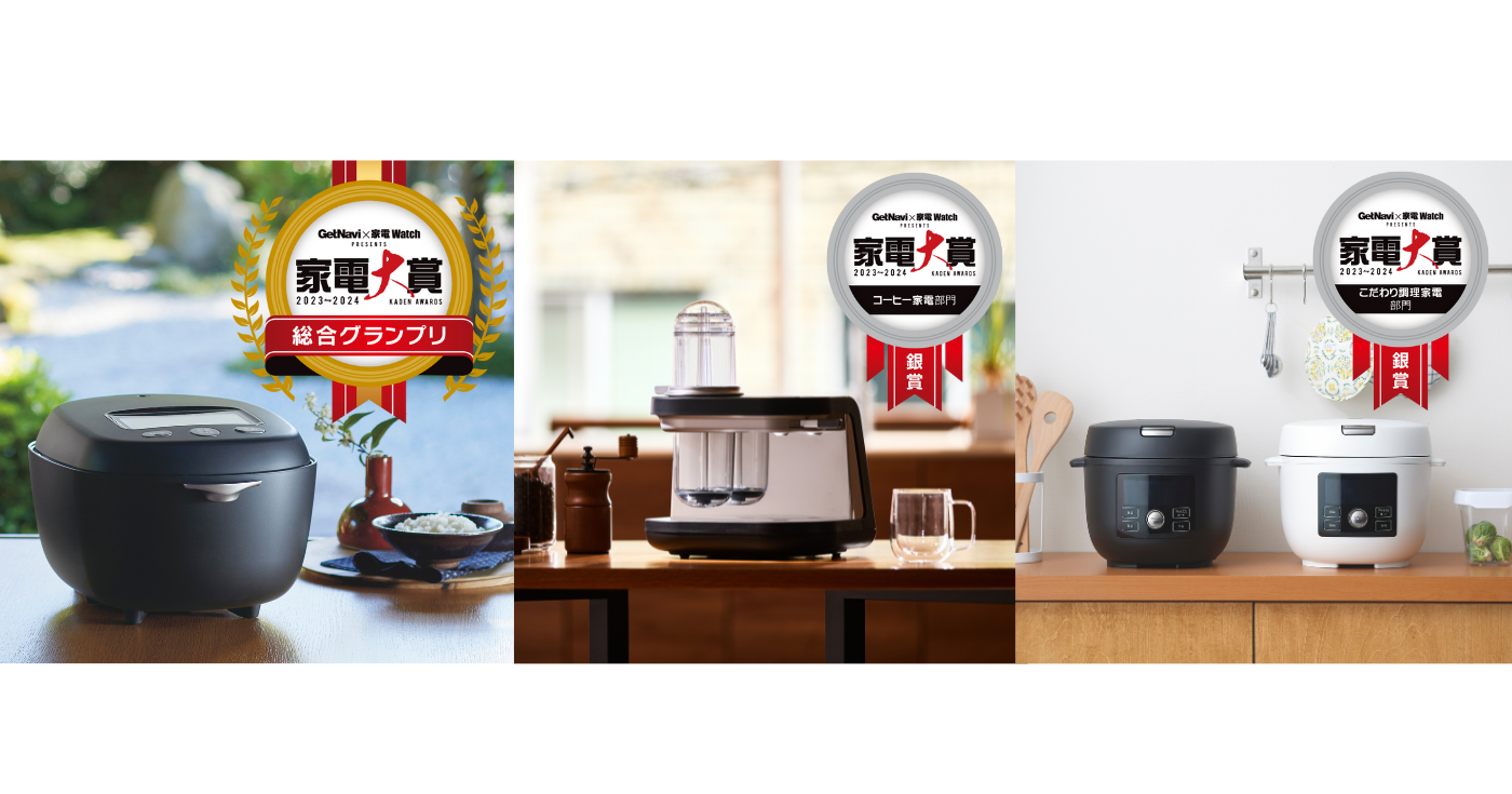 2015年より、株式会社インプレスが運営する家電と暮らしの情報サイト「家電 Watch」と、株式会社ワン・パブリッシングが運営するモノ・トレンド情報誌「GetNavi」が“日本&世界のものづくり応援企画”として共同で開催している家電アワード。その年を代表する家電製品を読者投票により大賞や各部門の金賞が決定する。9回目となる「家電大賞2023-2024」では過去最高となる全161製品がノミネートされ、グランプリと各部門賞、特別賞が選出されました。