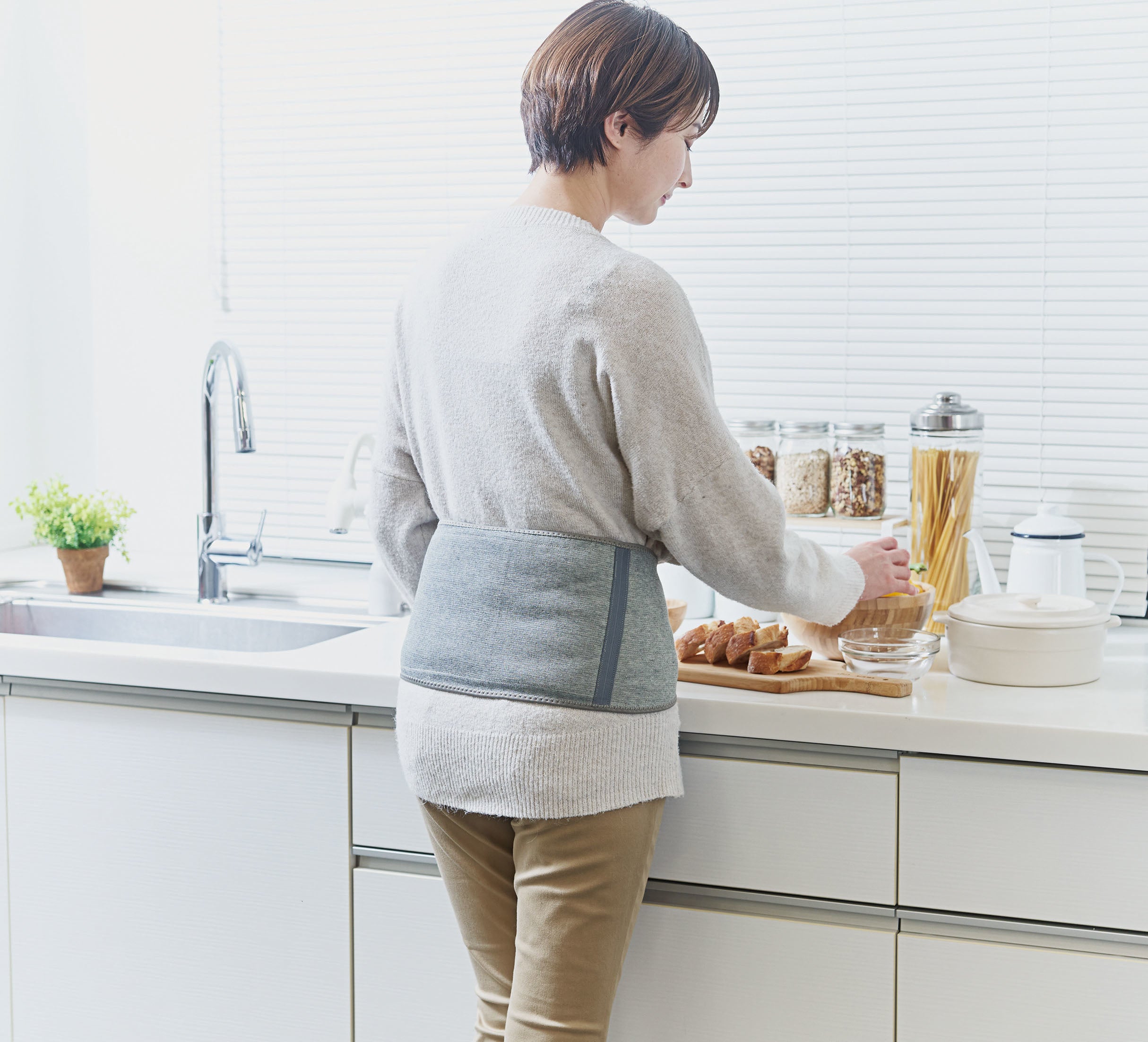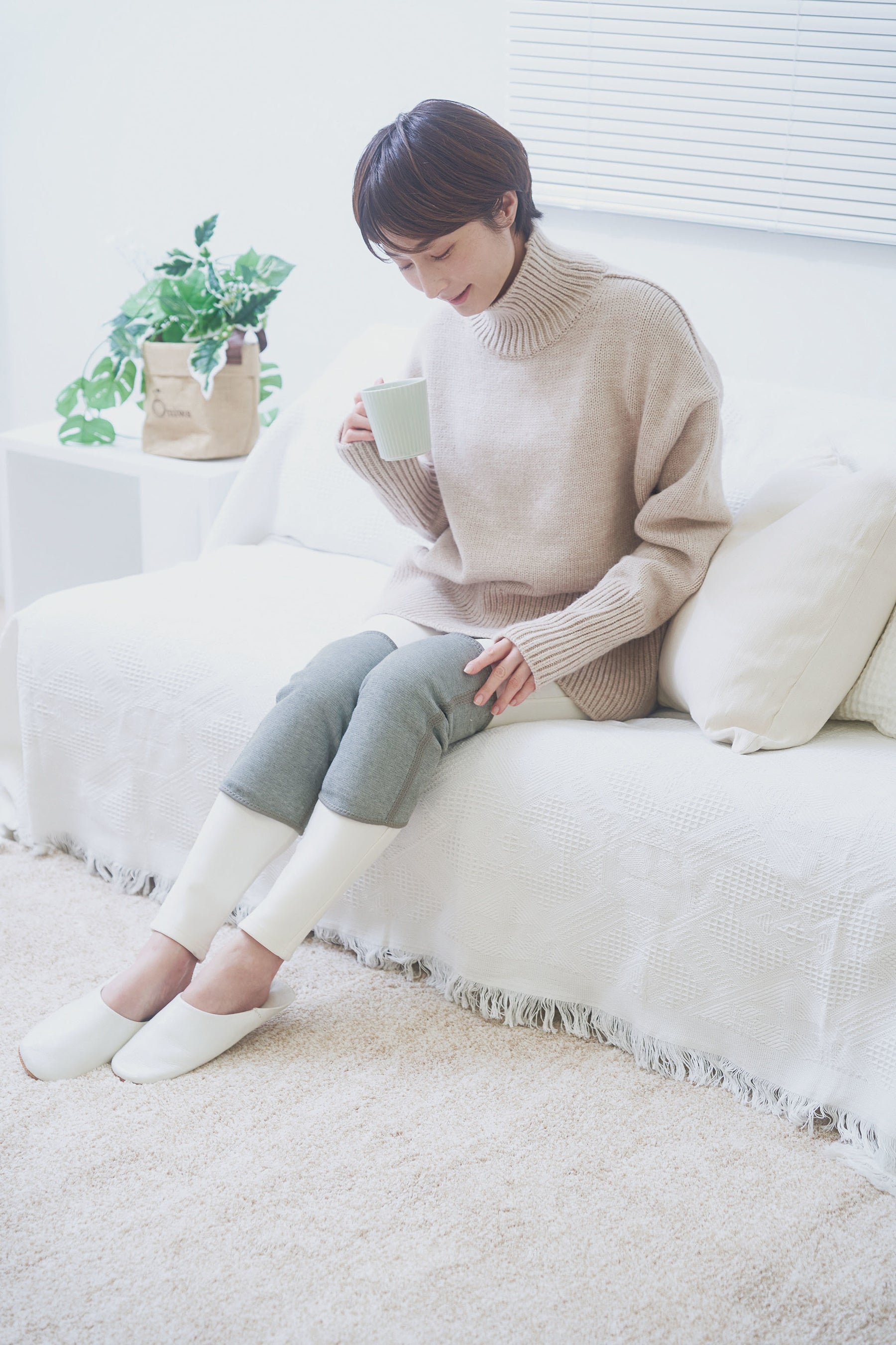 伸縮性のある生地でくつろぎタイムや家事をしながらも使用可能。