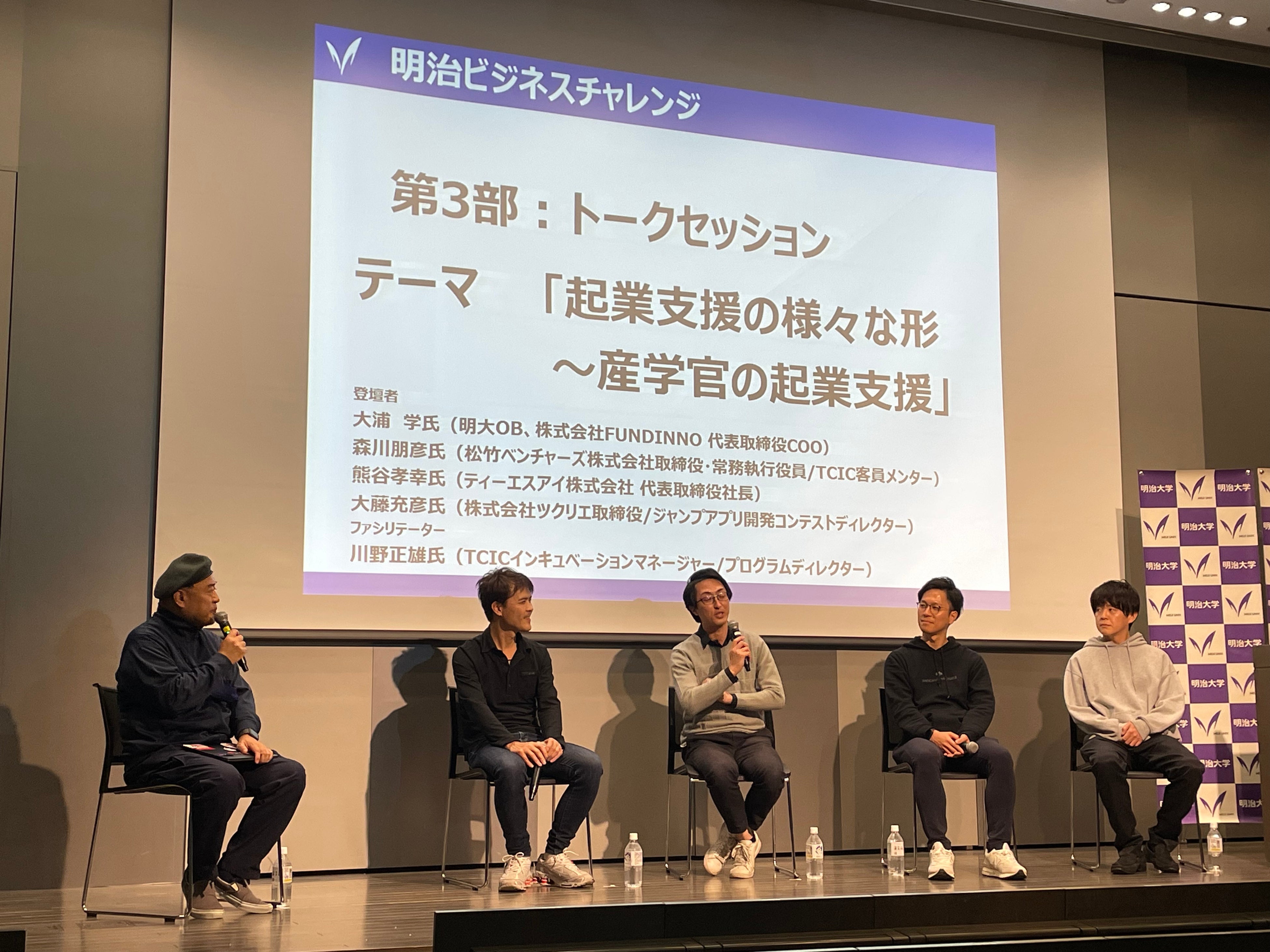 「価値創造人材の発掘」、「持続的な明治大学発スタートアップの育成」、「総合大学ならではの、幅広い分野におけるイノベーション事業開発のロールモデルを築く」、「社会や文化に貢献するビジネスモデルの創出」をテーマに、2022年より開催。第1回の受賞者等から、既に起業家が誕生しています。