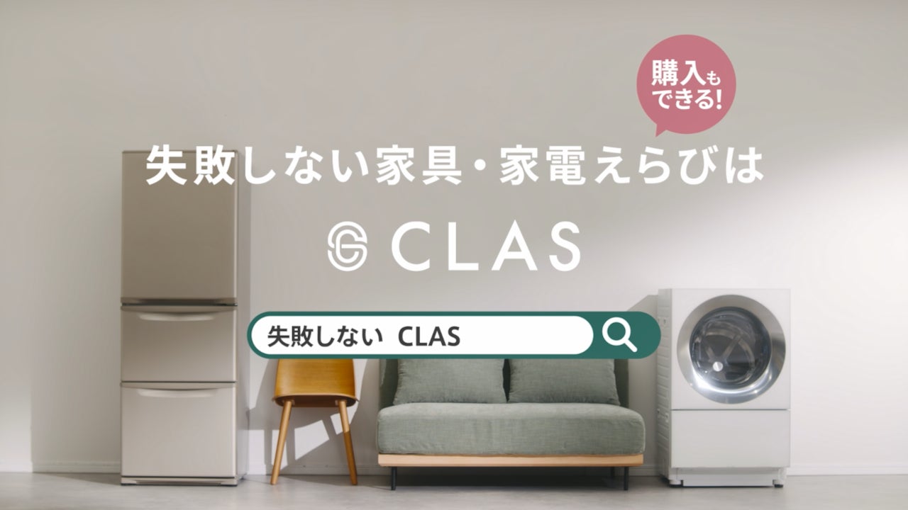 「CLAS(クラス)」は、家具や家電をはじめとするアイテムが1点から月額制でレンタルできるサブスクリプションサービスです。