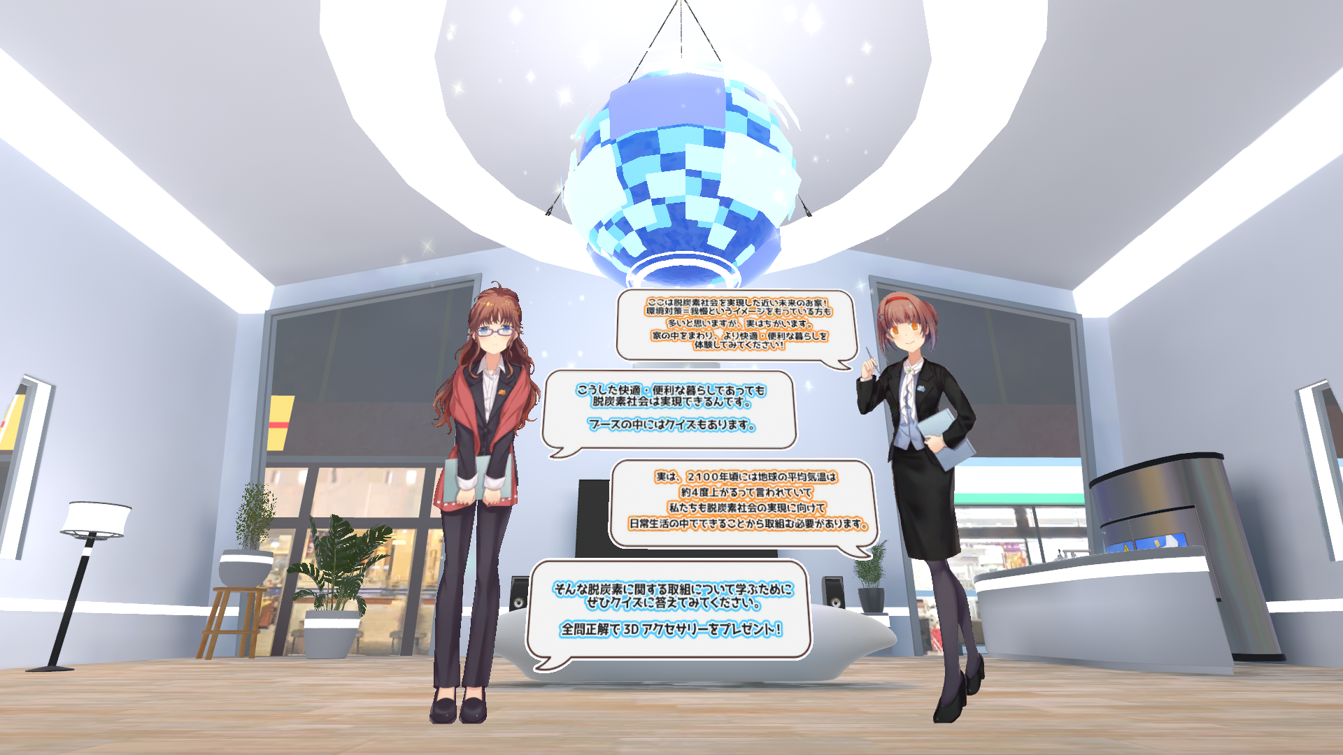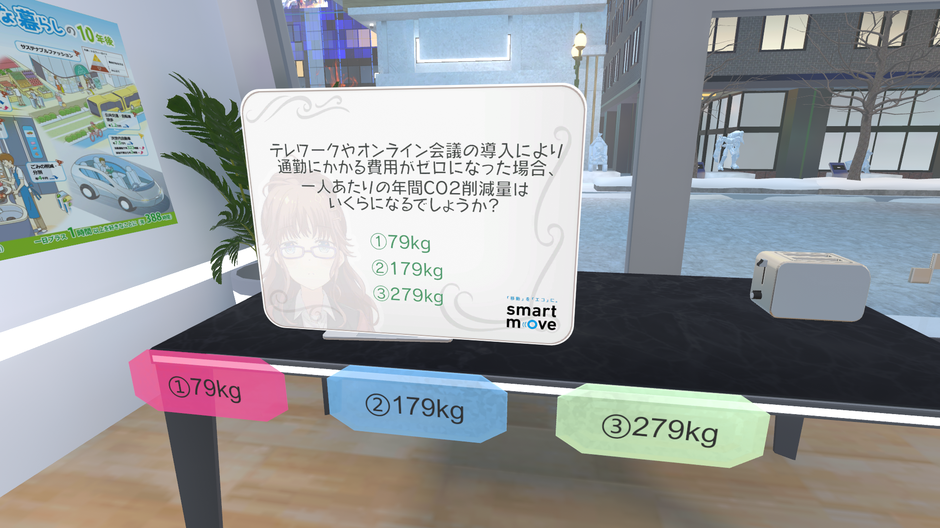 - モデルルームの中の特定の物に近づくと、ギミックが発動。カーボンニュートラルに関連するクイズも出題