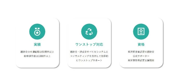 特に申請総額50億円以上、総申請件数1,300件以上という「実績の多さ」は大きな強みです。