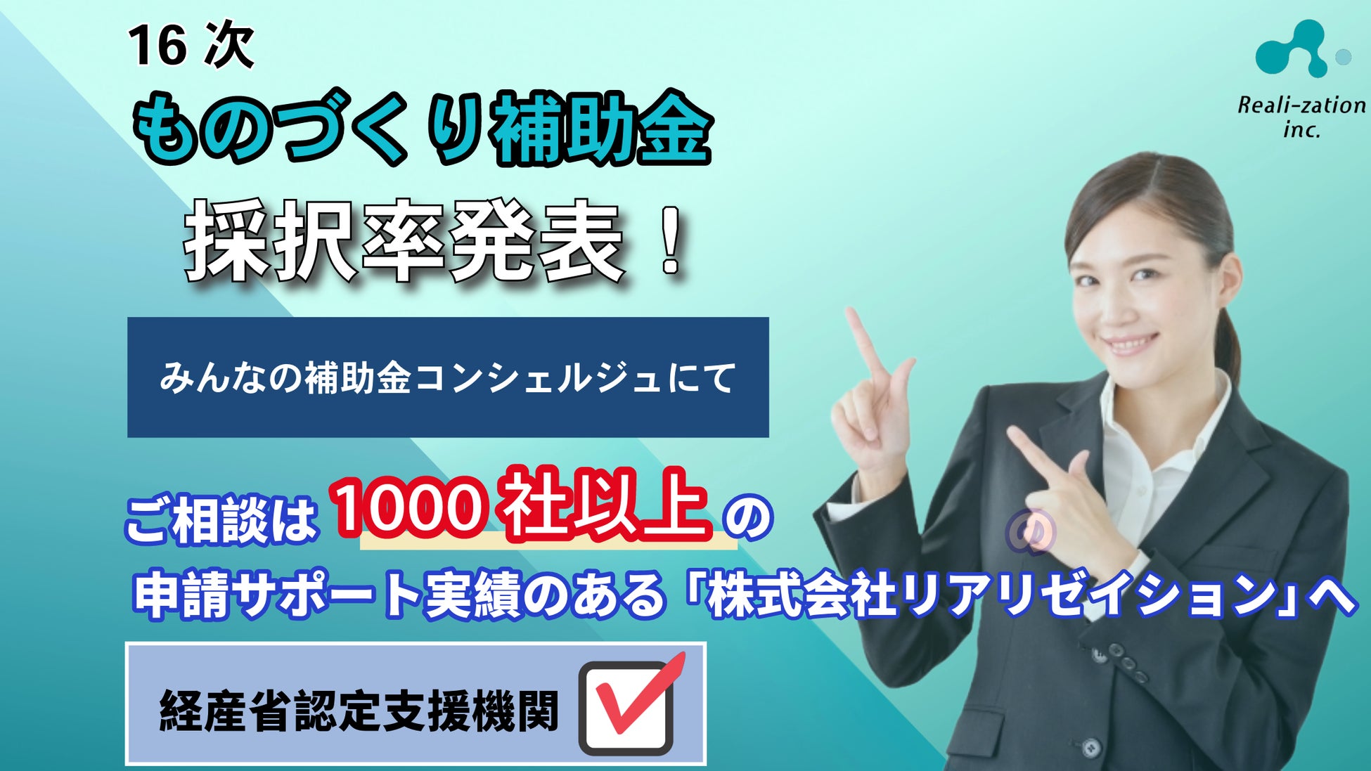 「世界一優しい行政手続きに」をキャッチコピーとする、株式会社リアリゼイション(本社:東京都渋谷区)は、「ものづくり補助金」の歴代採択率および、第16次の採択率を調査、発表しました。