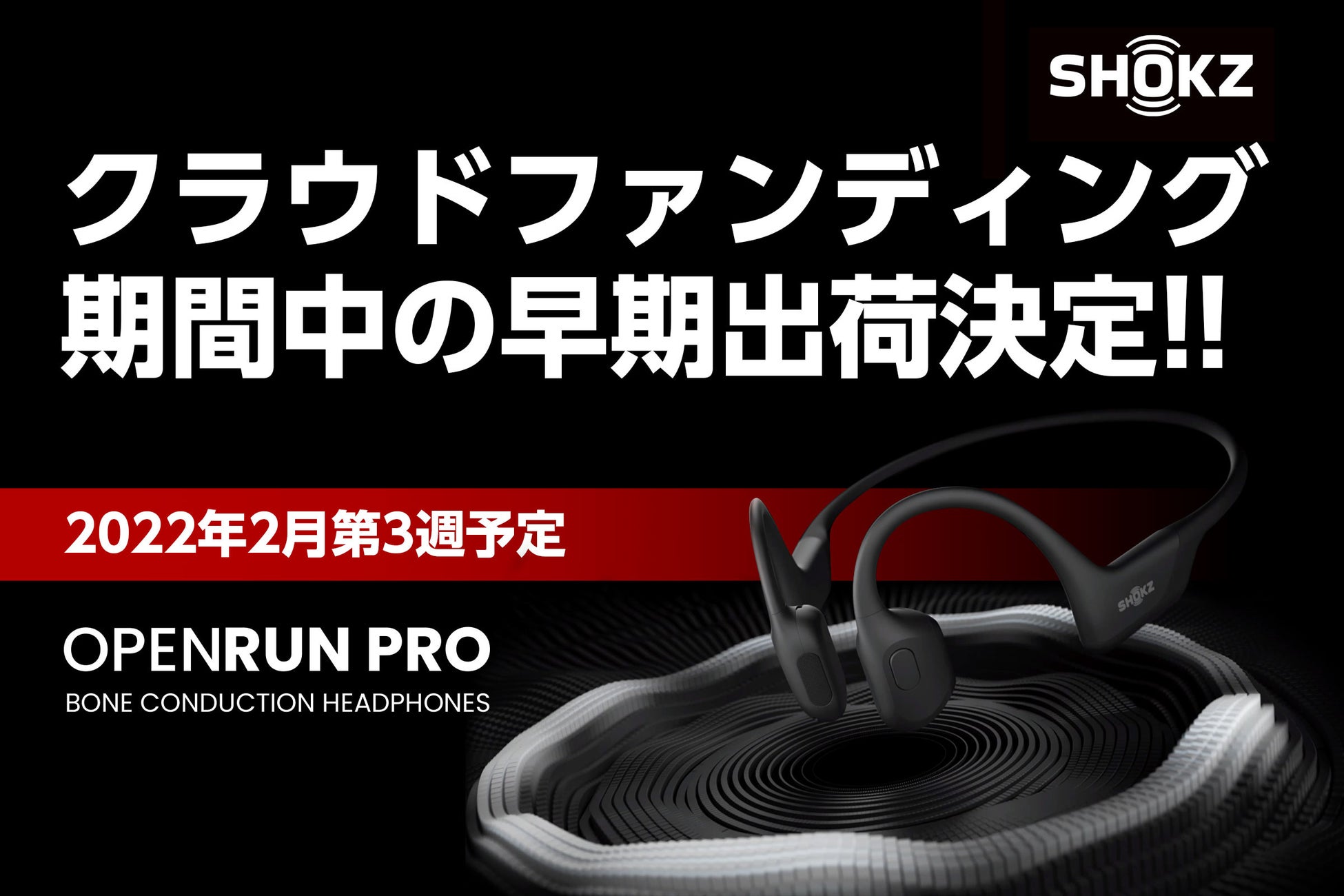 フォーカルポイント株式会社が、2022年1月10日より実施中のクラウドファンディング Shokz 骨伝導イヤホン OpenRun Pro について出荷予定スケジュールを見直し、当初の予定を繰り上げ、クラウドファンディング期間中の特別早期出荷を決定いたしました。なお、クラウドファンディングは当初の予定通り2月21日(月)まで継続いたします。