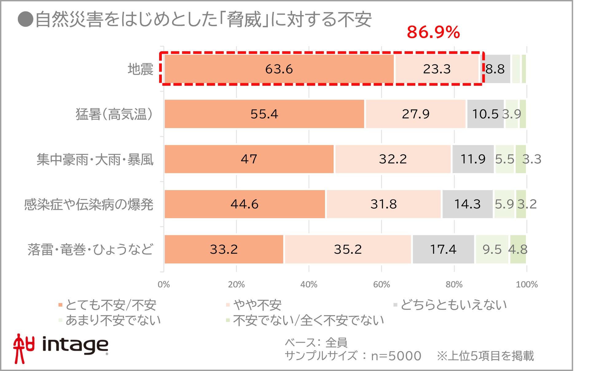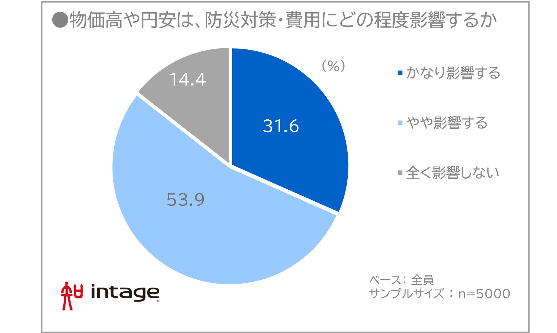 株式会社インテージ(本社:東京都千代田区、代表取締役社長:檜垣 歩、以下インテージ)は、全国15歳~79歳男女(5,000人)を対象に2024年7月25日~7月29日に実施した「防災意識に関する調査」の結果を公開します。