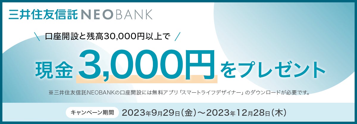 「三井住友信託NEOBANK 口座開設キャンペーン」実施~口座開設と残高30,000円以上で現金3,000円をプレゼント~