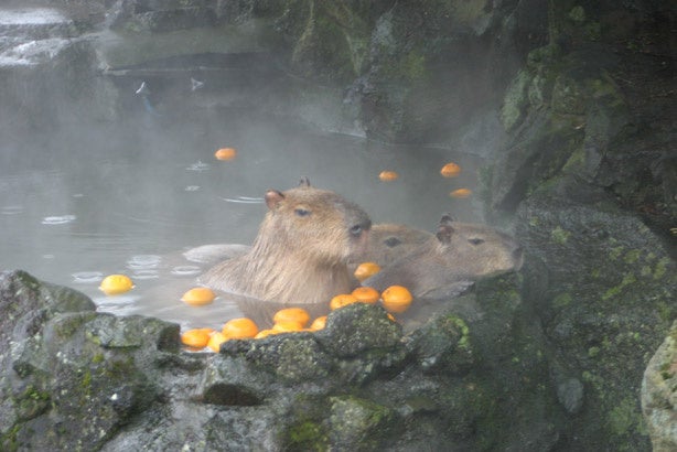 さらに、1996年の子年からスタートした冬至の時期恒例の「カピバラのゆず湯」は、日本の伝統行事とカピバラの“癒し”が相まって、現在では海外からのお客様にも人気のイベントとなっております。