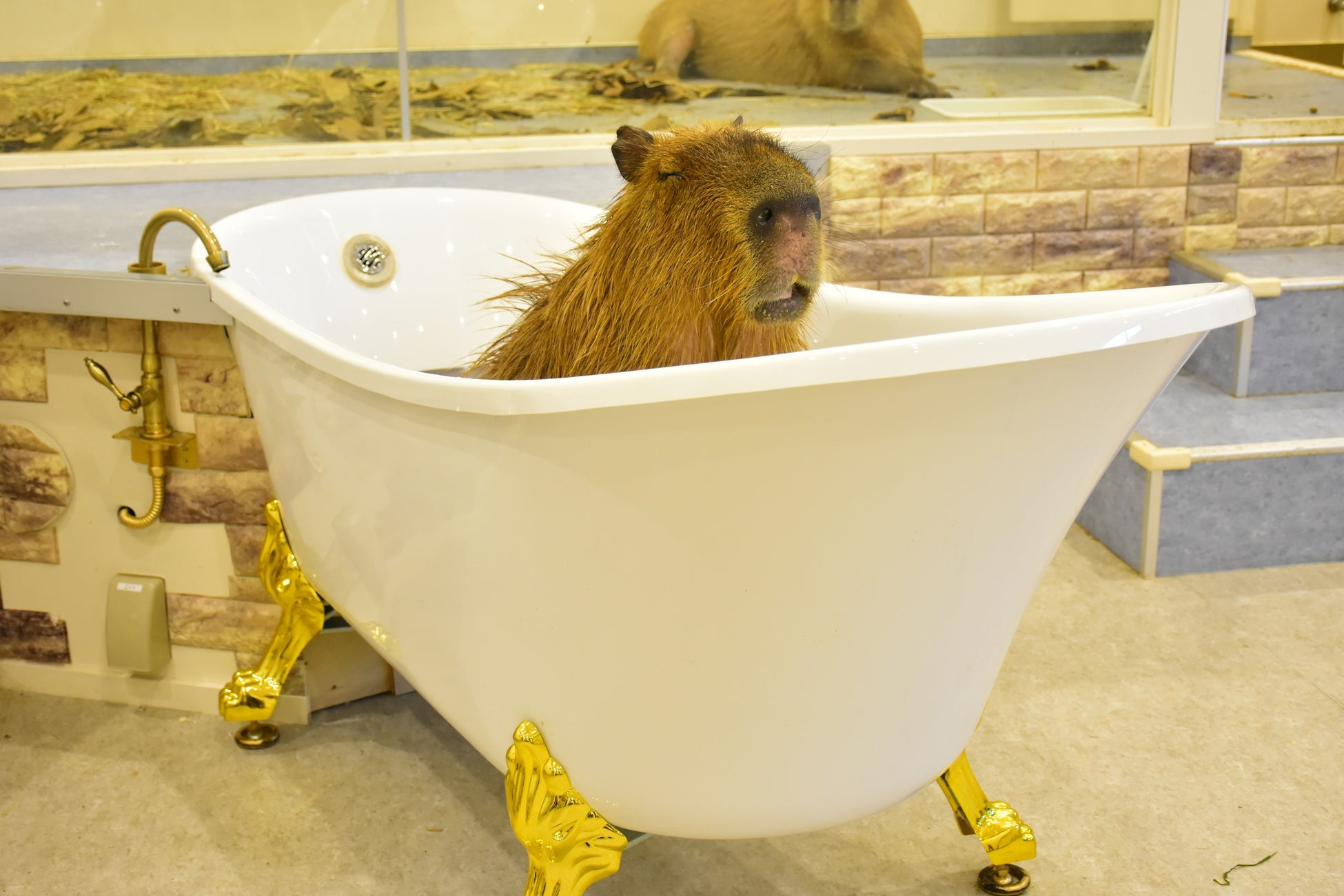 ※カピバラは入浴し始めてから1時間は湯船につかっていることがあります。入浴直後よりも、あとでゆっくりと空いている時間にご覧いただいた方が混雑を避けられます。