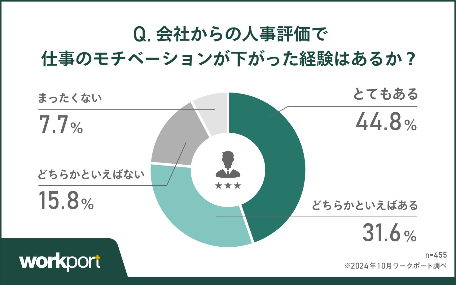 ■【人事評価による意欲の変化】約8割が評価によるモチベーション低下を経験 評価や処遇に「納得感がない」