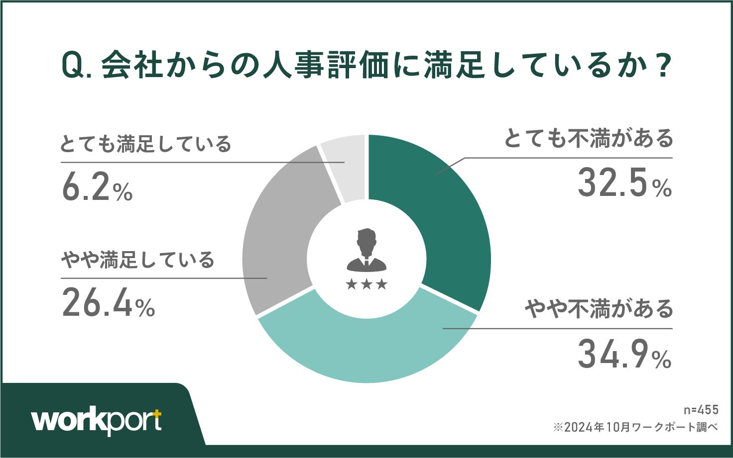 人材紹介業の株式会社ワークポート(本社:東京都品川区、福岡県福岡市博多区 代表取締役会長CEO:田村 高広)は、全国のビジネスパーソン455人(20代~40代・男女)を対象に、「人事評価の満足度」についてアンケート調査を実施しました。