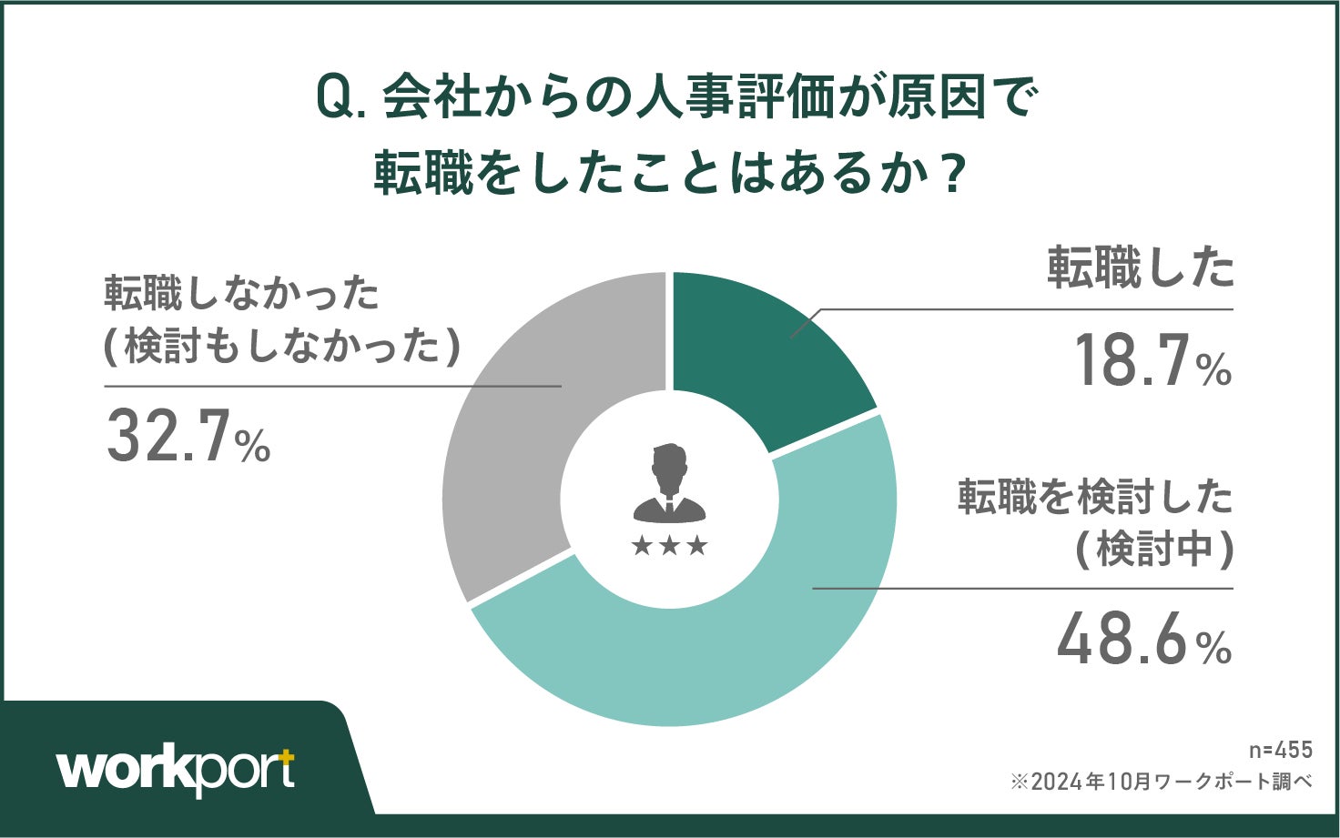 ■【人事評価の影響】人事評価が原因で「転職した」18.7%、「転職を検討」48.6% 約7割のキャリア選択に影響